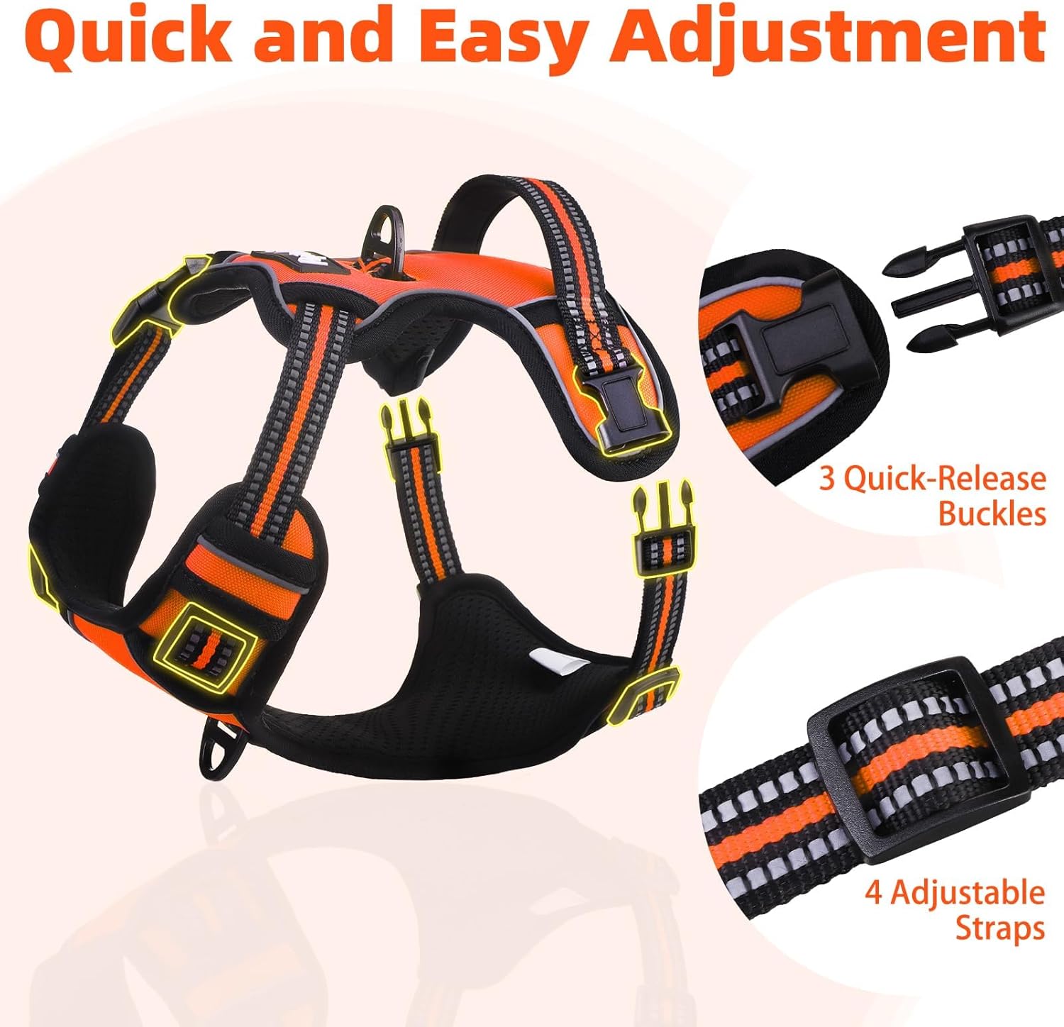 PUPTECK No Pull Dog Harness Medium Sized, Adjustable Reflective Dog Harness with Handle Easy Control, Comfortable Soft Padded Pet Vest Harness for Medium Dogs, Orange M