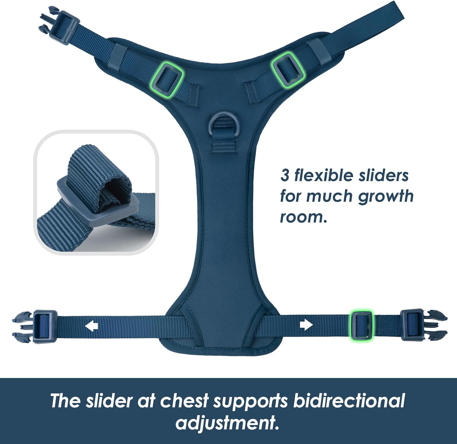 - Fully Adjustable: With its fully adjustable straps, our dog harness offers precise fitting for a perfect match to your dog's unique shape and size. The broad adjustment range not only accommodates different body types but also allows room for growth, ensuring long-term use and comfort.