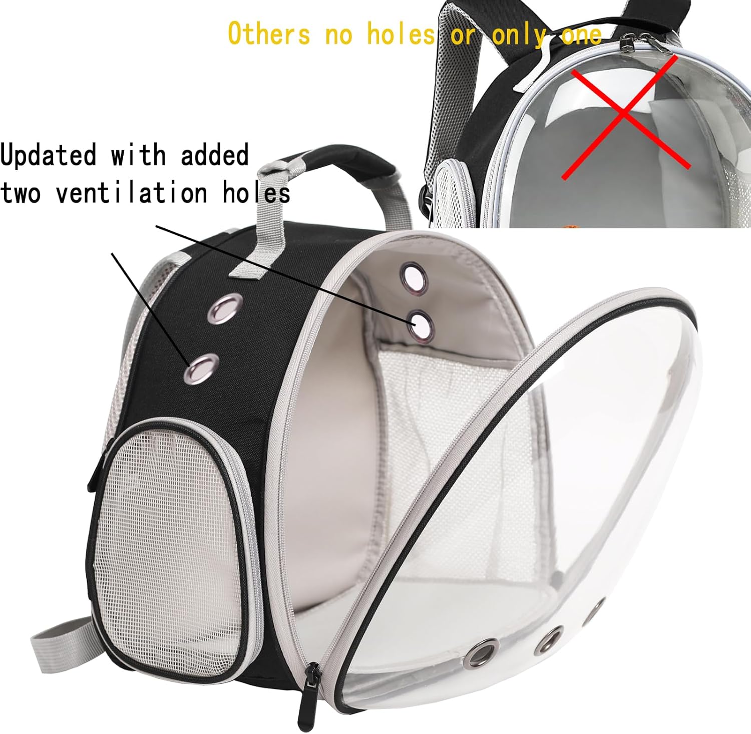 - The bearded dragon portable carrier backpack with leash is vented and breathable, crafted with breathable materials,side open window and pocket are made of anti-scratch mesh materials. 7 vents around the bubble carrier backpack,ensure sufficient air flow and allows lizard to breathe inside better.