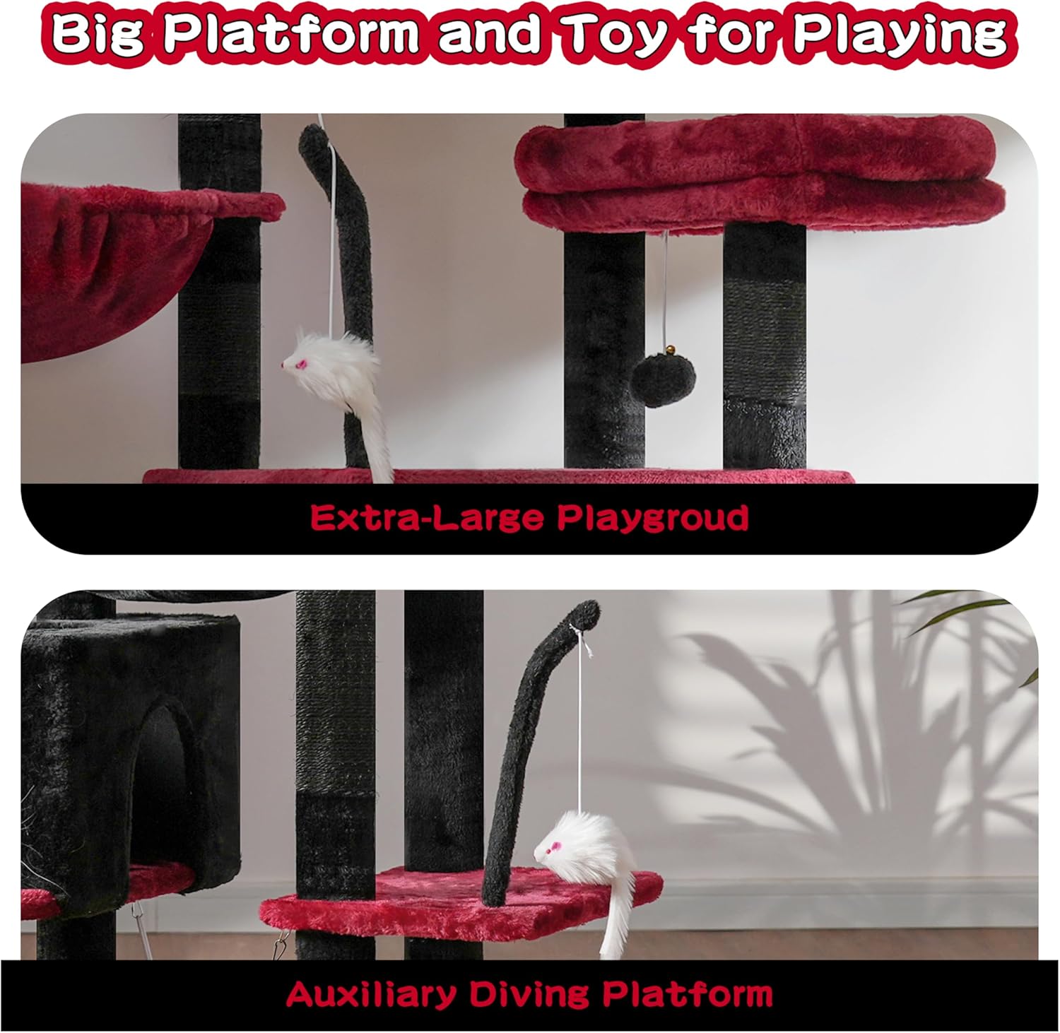 - Spacious and functional: The cat tree is rich in structure, all sections are large enough for lazy big cats or active kittens. Kitties can always find their favorite spot in this cat tower