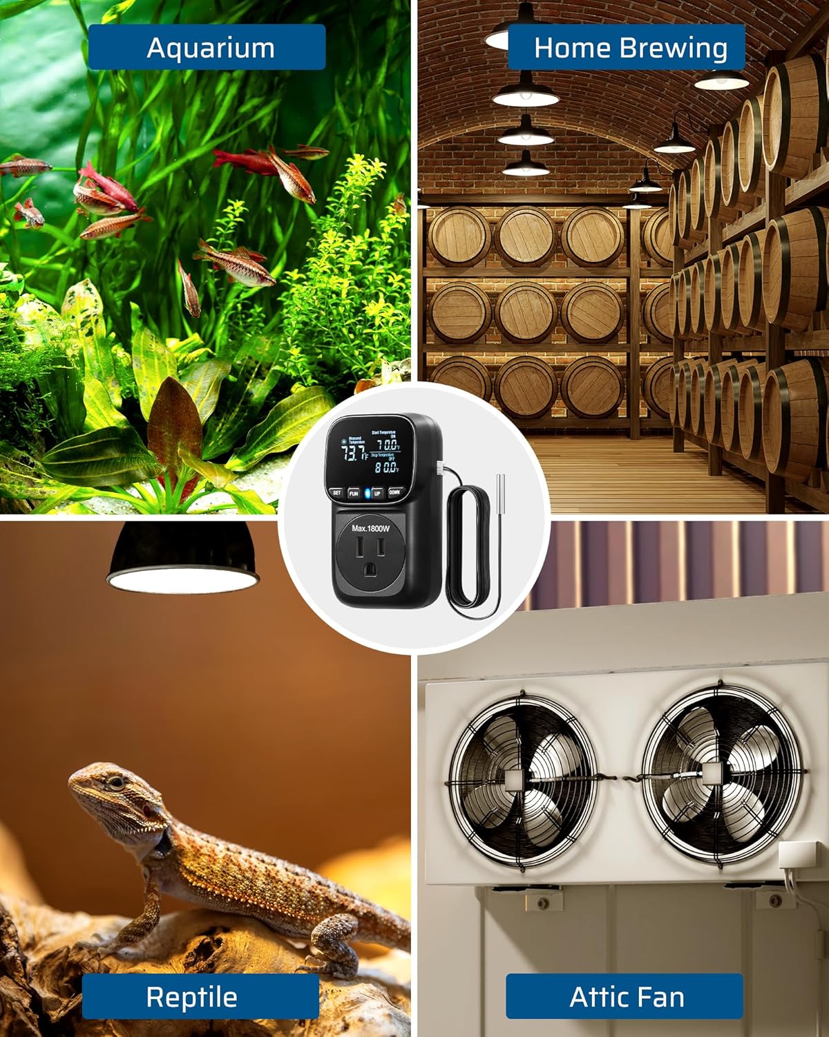 - [Versatile Applications] Temperature controller timer designed for incubators, reptile rooms, greenhouses, and home brewing; not only effectively maintains a constant indoor temperature, promoting the healthy growth of organisms or the brewing processes but also prevents freezing in well house