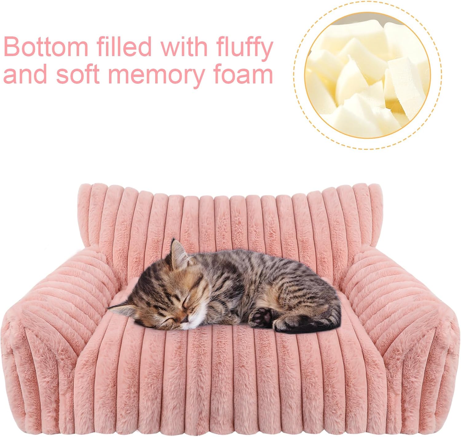 Cute Cat Couch Bed for Indoor Cats, Fluffy Pet Cat Sofa with Premium Soft Corduroy Fleece, Cute Small Dog Beds for Small Dogs, Fuzzy Puppy Chair with Removable Washable Cover (30x20x10,Pink)