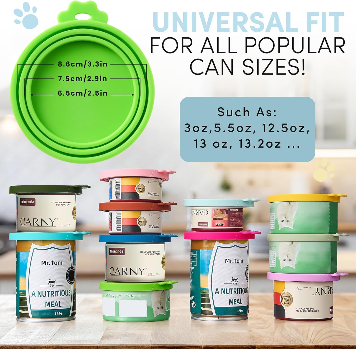 - Universal Size: These can lids for dog food and cat food cover fit various sizes and types of Pet Cans, like 3 oz,5.5 oz and 12 oz cans. With can covers for cat food, they provide a tight fit, ensuring your pet's food stays fresh in any container.