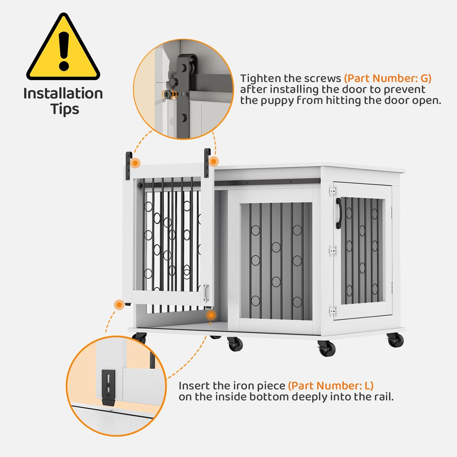 - 【Convenient Double-Door Access】Featuring a sliding barn-style door on the front and a side door, this indoor dog kennel allows for easy entry and exit. Ideal for active dogs that enjoy moving around freely.