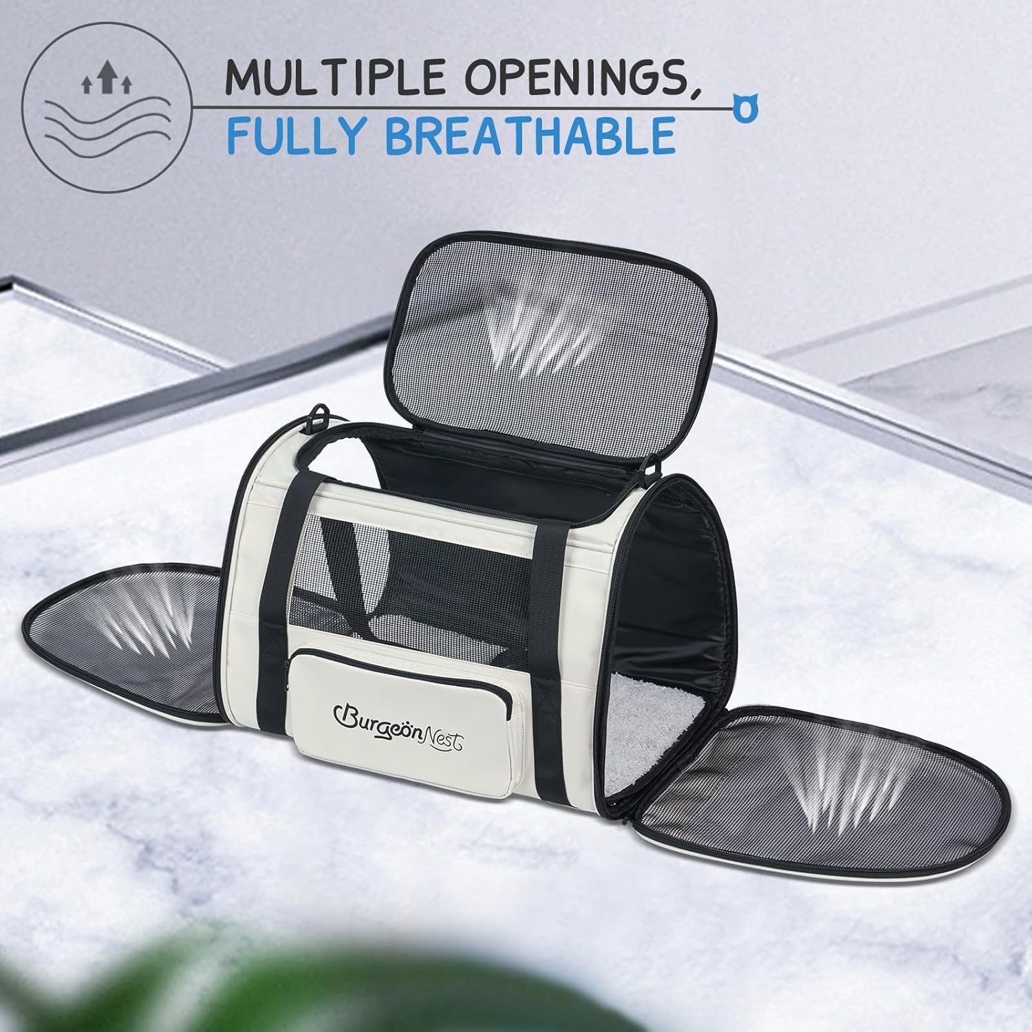 BurgeonNest Cat Carrier for Large Cats 20 lbs,Medium Pet Under 25 lbs,2 Puppy and Small Dogs with Unique Side Bag,Top Load Pet Carrier Soft-Sided Escape Proof with 4 Ventilated Windows