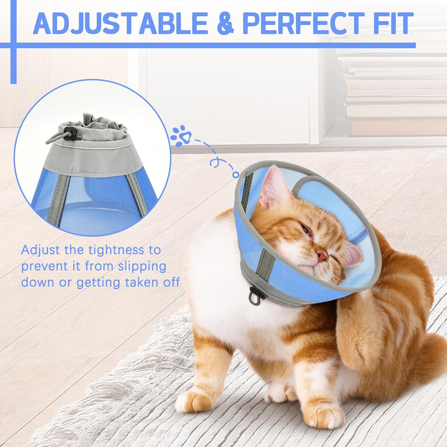 - Soft and Breathable Mesh - Say goodbye to the discomfort of rigid plastic collars! Our cat neck cone is crafted from a soft, breathable mesh material that offers cushioning when squeezed or bumped. The dense mesh ensures excellent ventilation, keeping your cat comfortable throughout the day. This lightweight design is so unobtrusive that your pet may even forget they're wearing it, allowing them to eat and sleep normally.