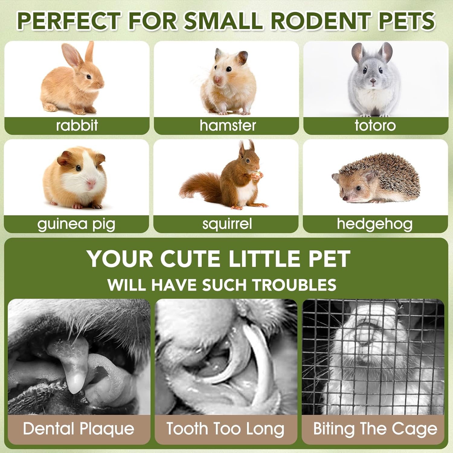 - Natural Molar Snacks: Rabbit chews are made of high quality timothy hay, Rose and Chrysanthemum, without any added pigment material, glue,additives. They are rich in plant fiber and nutrients that help pets improve digestion, increase their appetite, which ensure the health of small animals growing up.