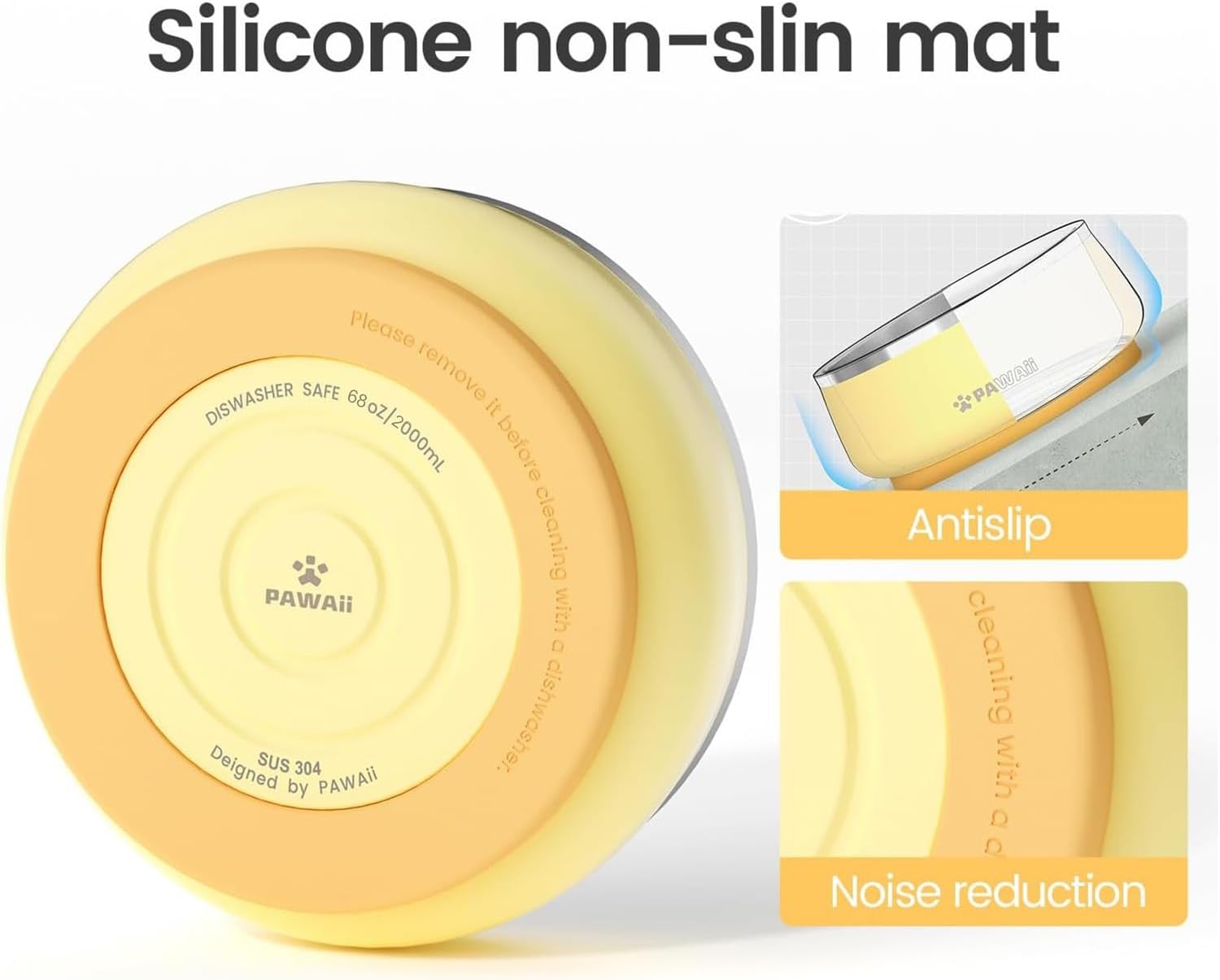Pawaii Insulated Stainless Steel Dog Bowl with Non-Slip Base & Double Wall Design, ID Tag Included - 68oz Durable Dishwasher Safe Bowl for All Dogs