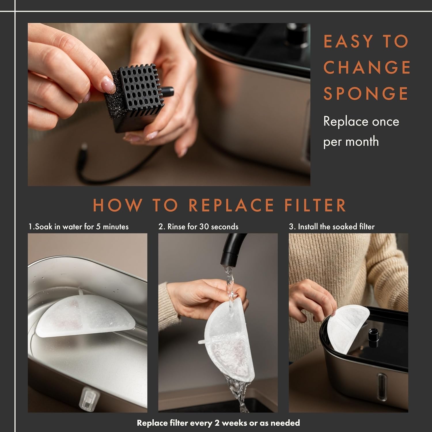 - [Easy to Install & Replace ]– Simply rinse the filter under running water for 3-5 minutes before use, then insert it into the fountain. Regular replacement ensures optimal water quality and pet hydration.