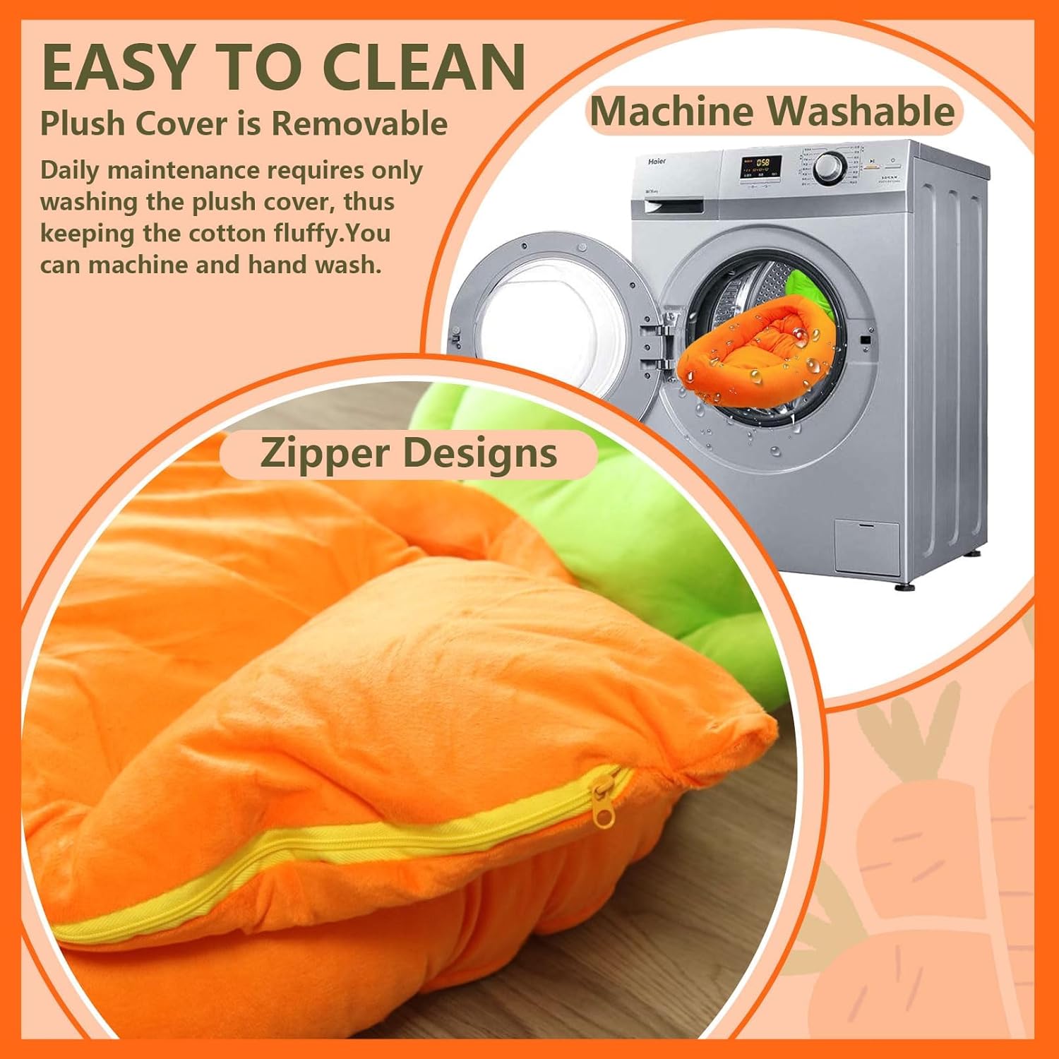 - π[Machine Washable]:If you find a bit of dust on the rabbit bed, you can just wash the plush cover. Because our rabbit bed has a zipper design, the plush cover is removable. If the whole thing is dirty, you can just throw the rabbit bed into the washing machine.