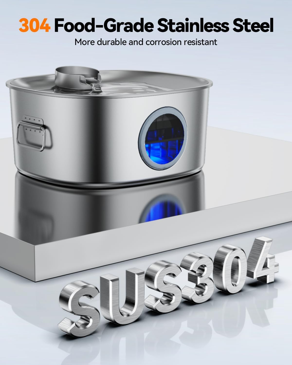 Dog Water Fountain Stainless Steel, 11L/2.8Gal Large Pet Fountain for Large Dogs Inside, Dog Fountain Water Bowl Dispenser with Visible Window & LED, Ultra Quiet for Multi-Pet (Filters)