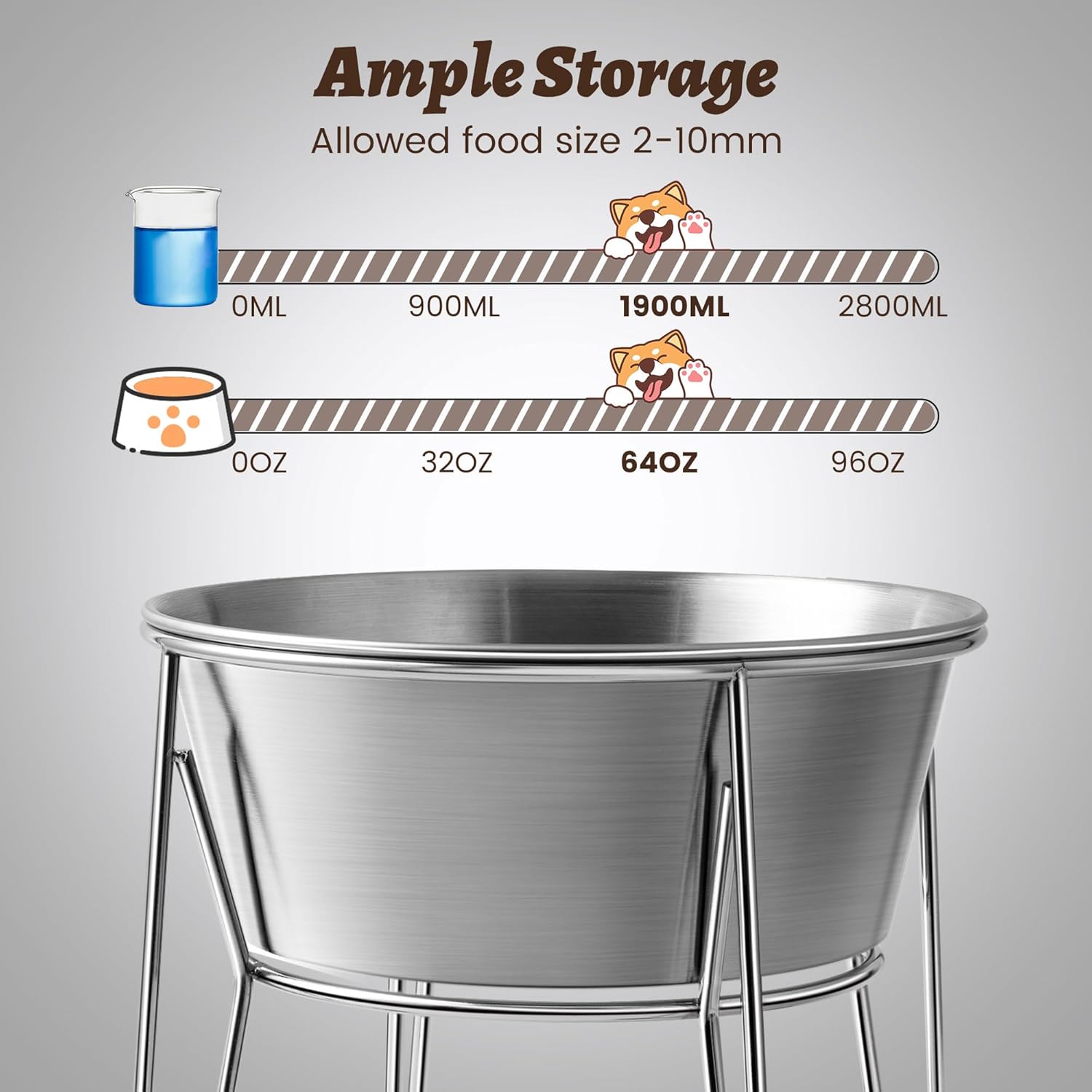 - Large Capacity & Wide Bowl : Each bowl holds 1.9L (8 cups) of water or food, with a 7.8 inch (20cm) wide opening for easy access, perfect for medium to large dogs.