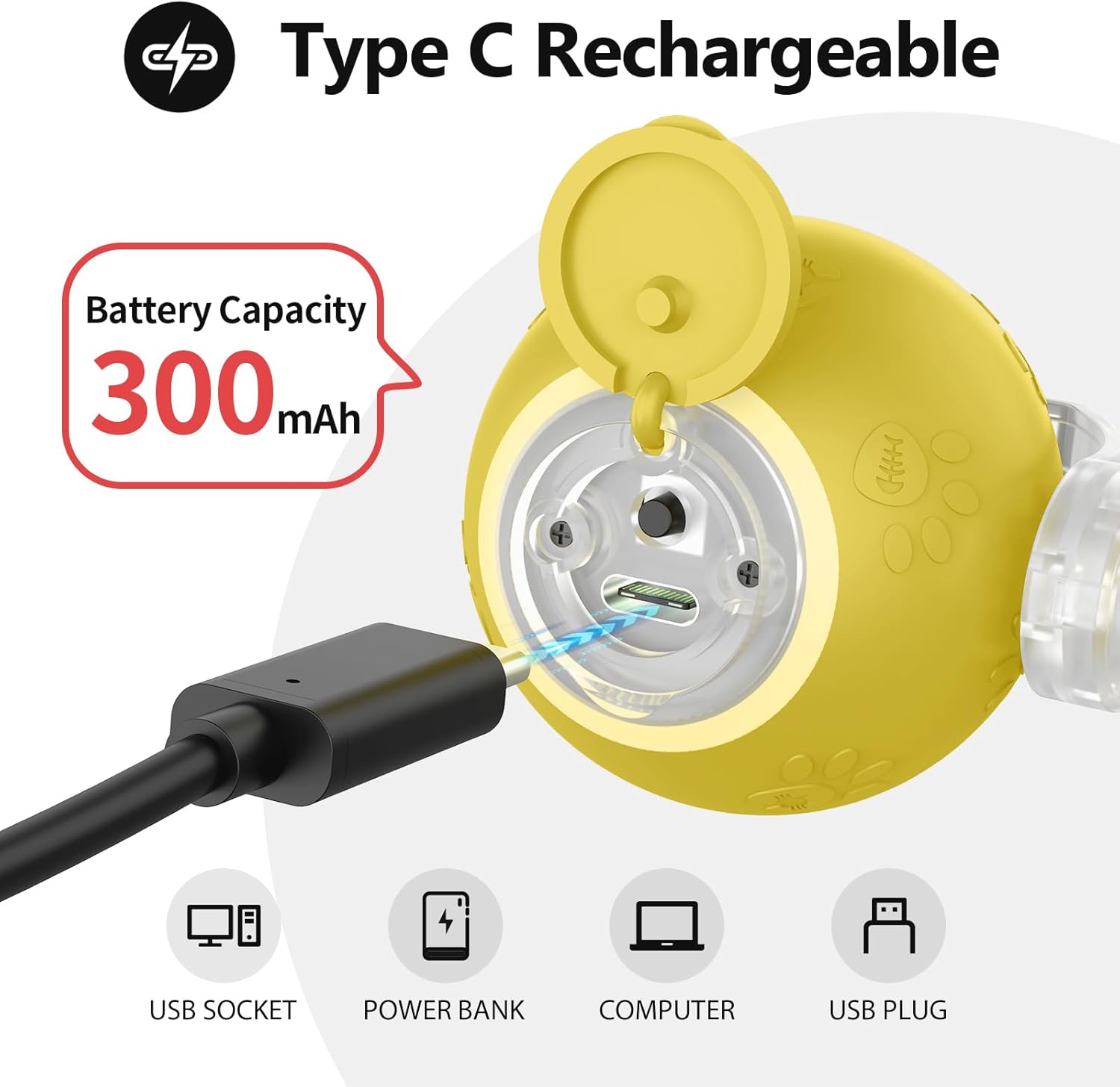 - USB Rechargeable: This interactive cat toy has a built-in rechargeable battery, and the charging port is located inside the switch button cover. Open the cover and easily charge it using the included USB cable.