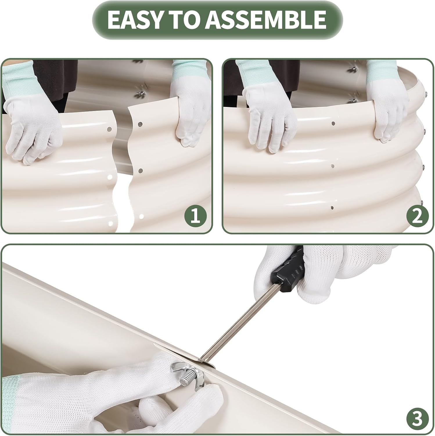 - 【High-Quality Materials & Durable】 Made from 0.7mm galvanized metal panels with double-layer anti-corrosion galvanization, this outdoor raised garden bed features a robust oval-shaped design for added strength and durability. Resistant to rust and corrosion, it provides a long-lasting gardening solution that can be reused for many years, ensuring a sustainable and reliable space for your plants to thrive