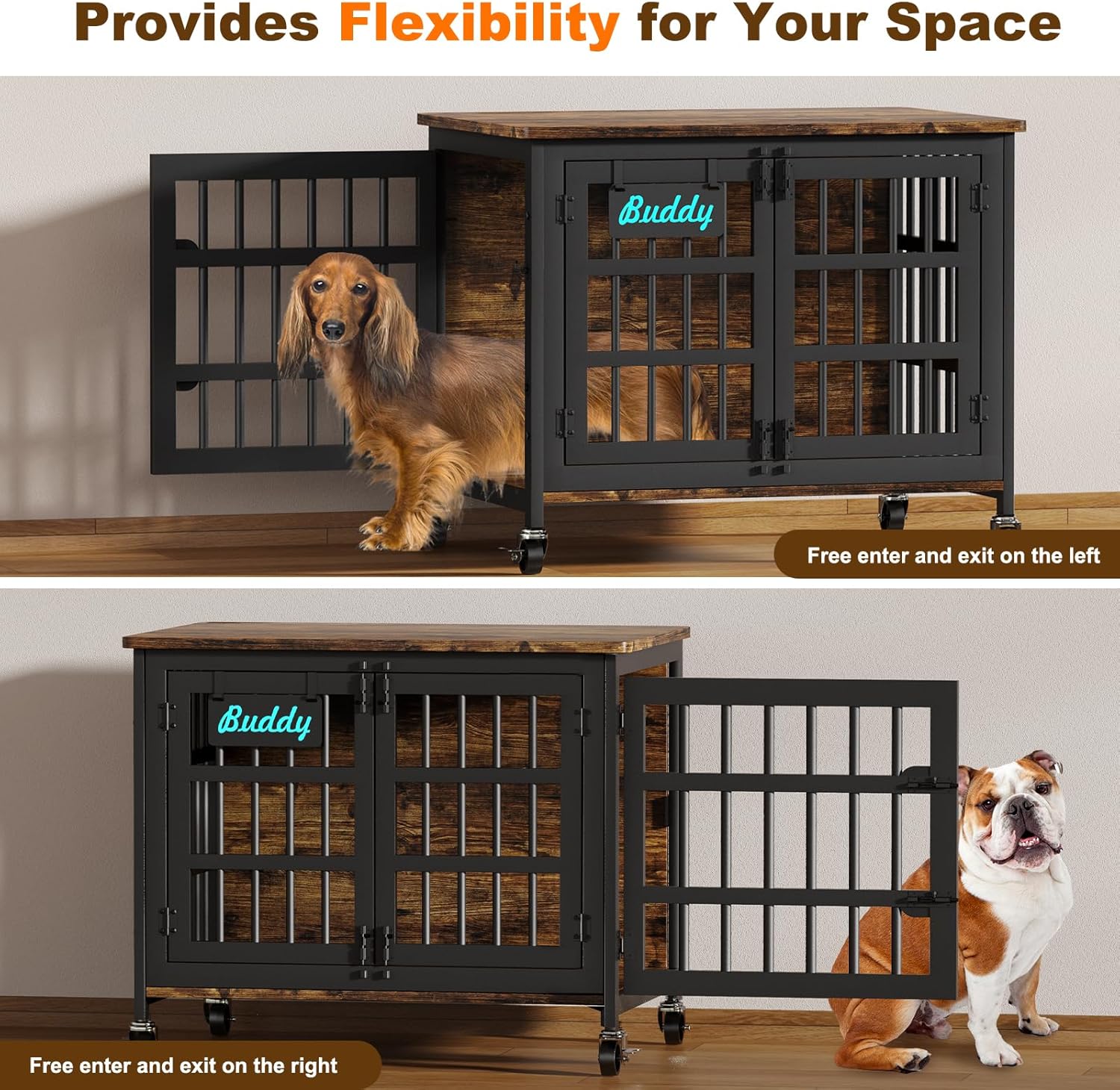 EasyCom 33"/27" Dog Crate Furniture with Name Tag, Heavy Duty Dog Kennel Indoor for Medium and Small Dogs, Double-Doors Sturdy Metal Dog Cage, Decorate House as TV Stand, End Table, Bedside Table