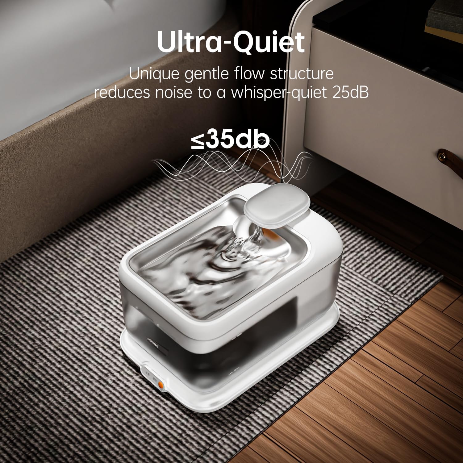 - Hygienic Stainless Steel Tray and Quiet Pump – Rust-resistant tray is durable and easy to clean. Ultra-quiet water pump runs below 35dB for a peaceful environment.