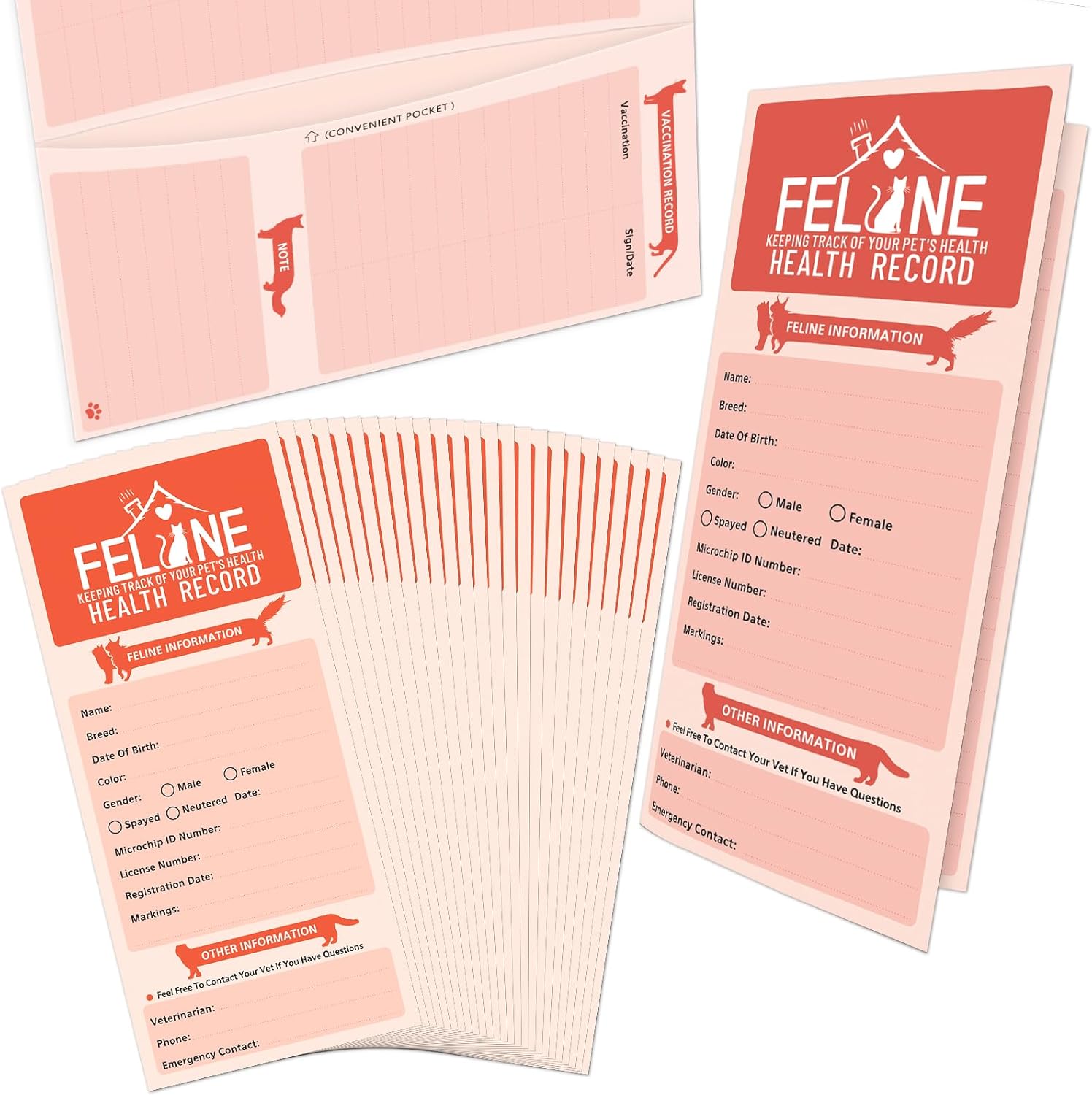 ANZON MORIES 24 Packs Cat Health Record Cards Vaccination Book with Storage Pocket, Large 8 x 10.5 in Feline Vaccine Shot and Kitten Immunization Memo Booklet for Kitty Pet Nursing Supplies