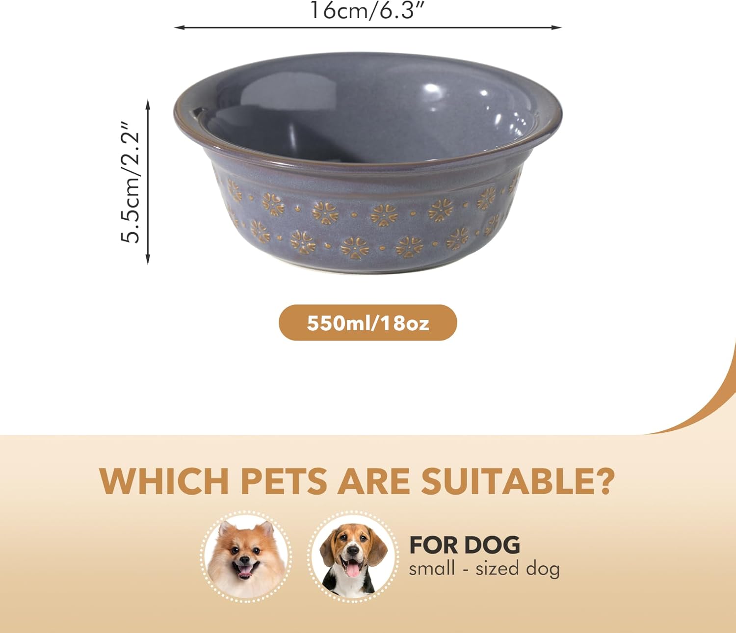 6.3inch Ceramic Set of 2 Dog Bowls, Food and Water Bowls for Small and Medium Dog, 2pcs Basic Dog Bowl, Wide Opening Rounded Edge (2 Bowls, Reactived Glaze -Grey)