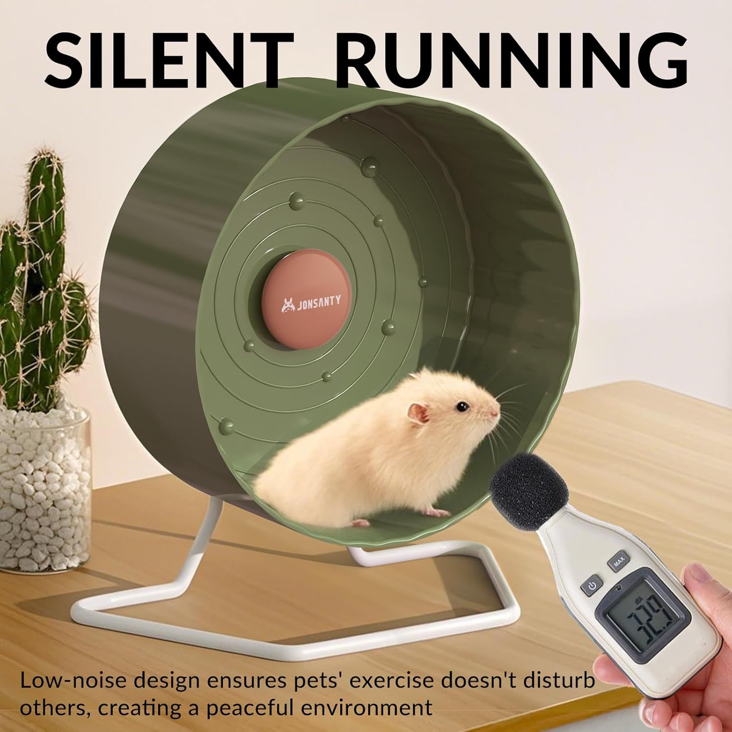 9.5" Silent Hamster Wheel, Exercise, Release Stress, Relieve Anxiety, Adjustable Height Stand, for Syrian Dwarf Hamster, Gerbil, Mice, Small Medium Sized Pets, Green