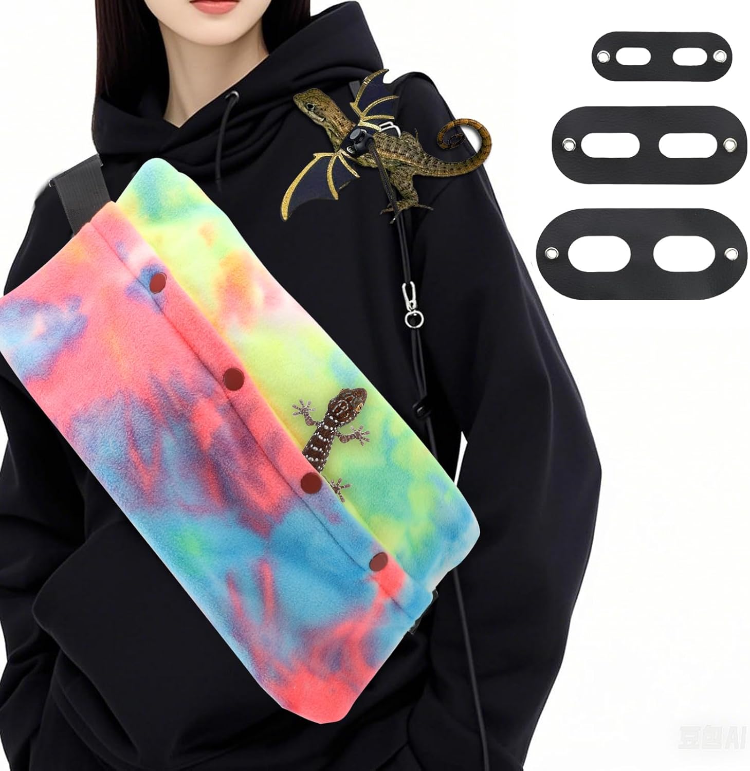 Bearded Dragon Leash and Harness Set, Adjustable Bearded Dragon Carrier Sling Leash and Carrier, Lizard Reptile Small Pet Training Leashes and Beardie Snuggle Sling Bag for Outdoor Travel (Rainbow)