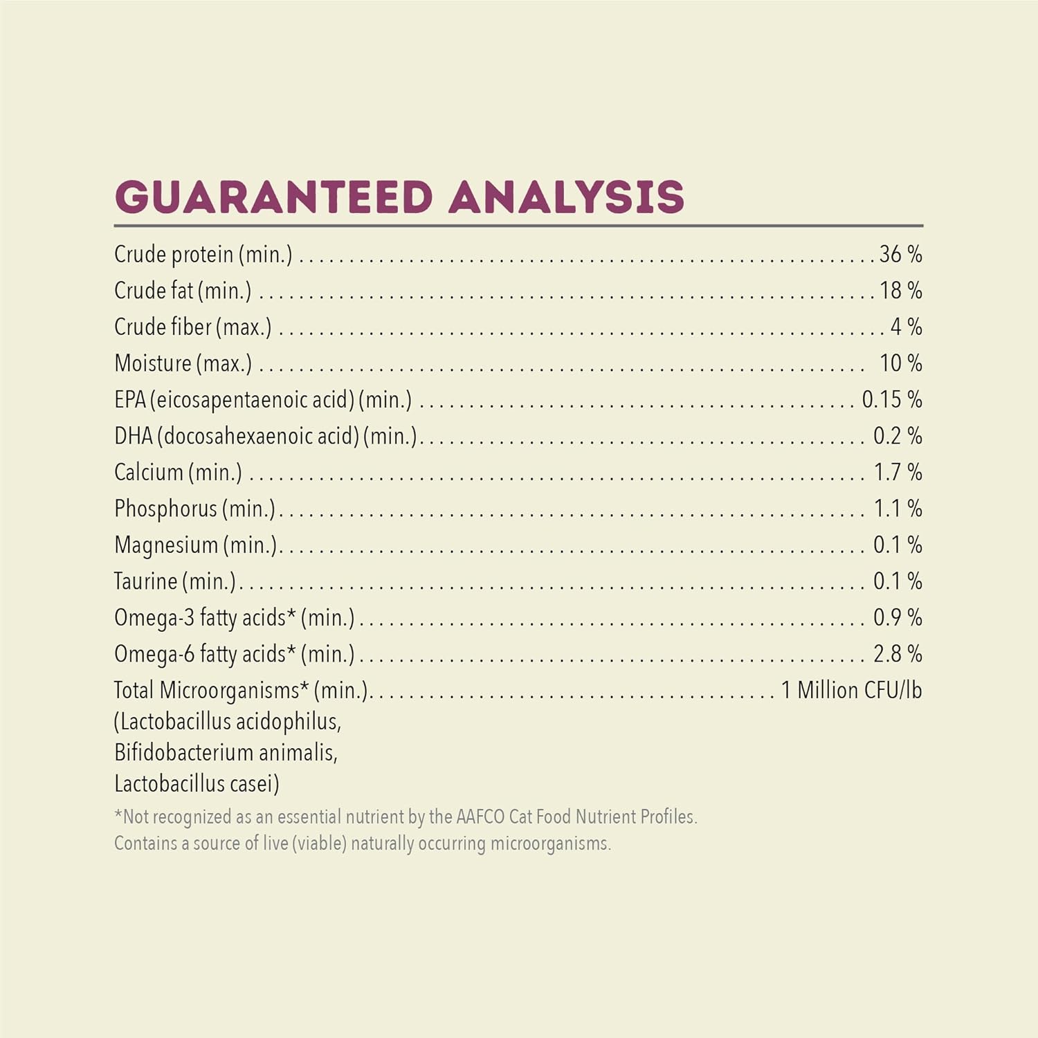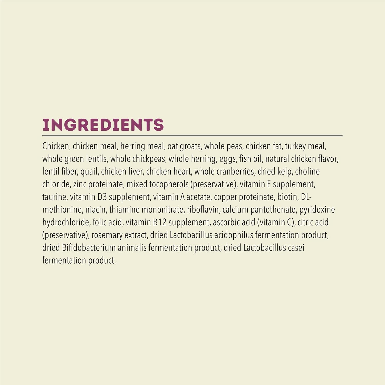 - This grain free**** dry cat food never includes artificial flavors, colors or preservatives and we never add soy, corn, tapioca or wheat.