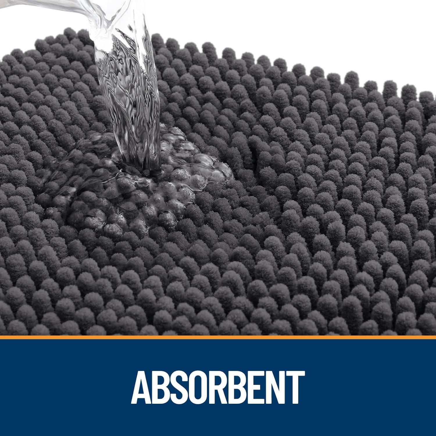 OLANLY Door Mat for Muddy Dog Paws 70x24, Ultra Absorbent Chenille Mud Doormat with Paw Print Design, Non-Slip Washable Doormat for Indoor Entryway, Quick-Dry Pet Bed Mats for Dirty Dogs, Dark Grey