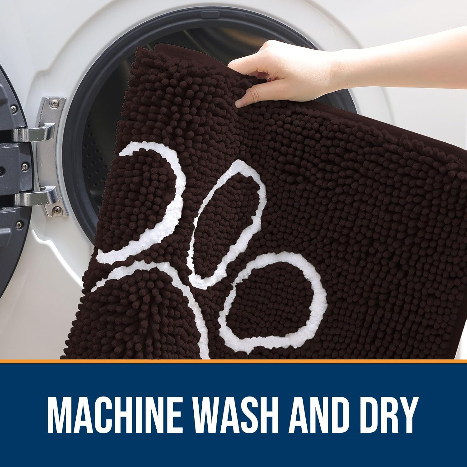 OLANLY Door Mat for Muddy Dog Paws 48x30, Ultra Absorbent Chenille Mud Doormat with Paw Print Design, Non-Slip Washable Doormat for Indoor Entryway, Quick-Dry Pet Bed Mats for Dirty Dogs, Brown