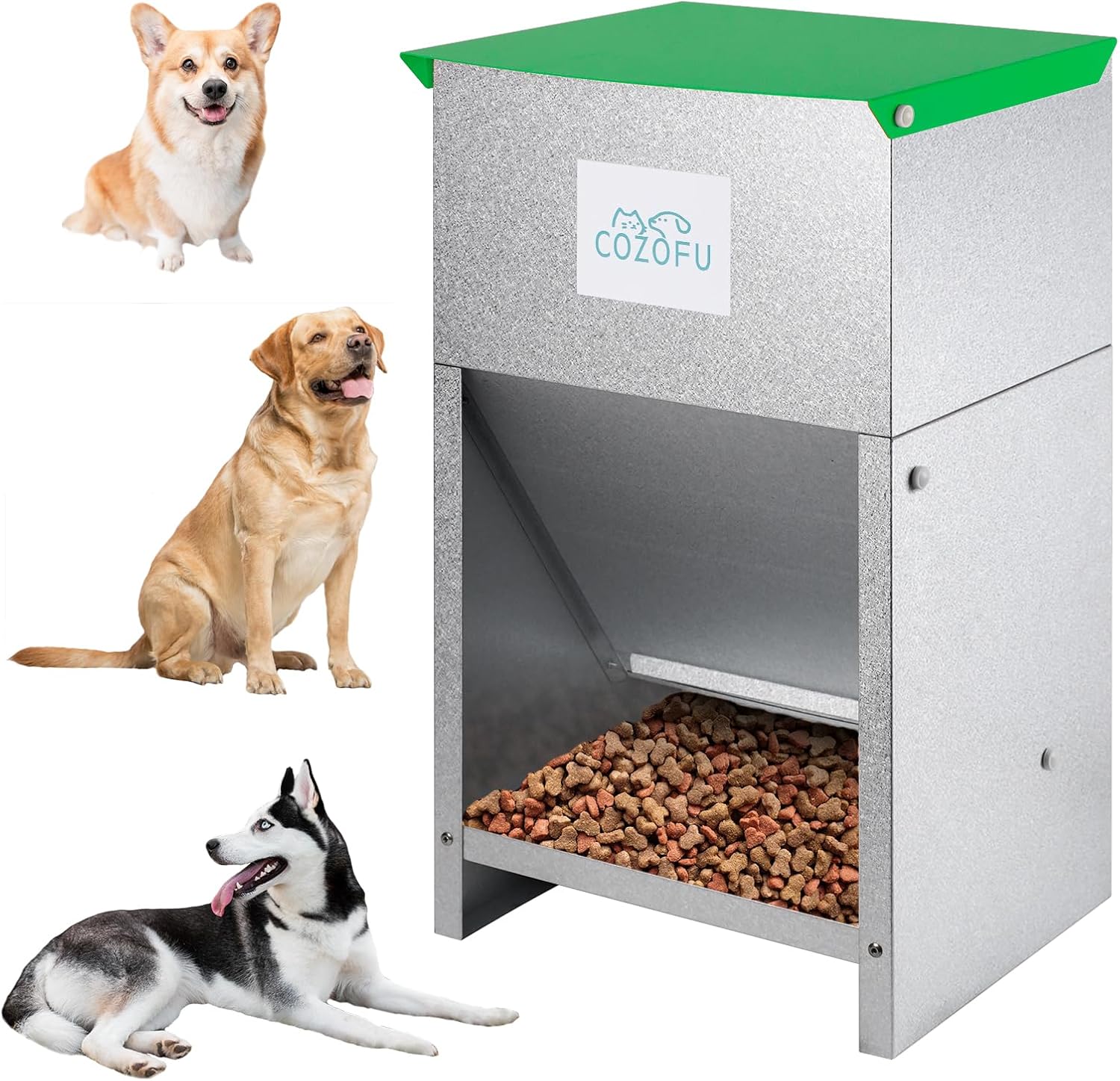 - WEATHER-RESISTANT DESIGN FOR DOGS: Crafted from heavy-duty, rust-resistant G90 galvanized steel, our automatic gravity dog food dispensers are perfect for indoor or outdoor use. For outdoor placement, we recommend positioning it under a large overhang, on a covered deck, porch, or carport to keep it safe from the elements