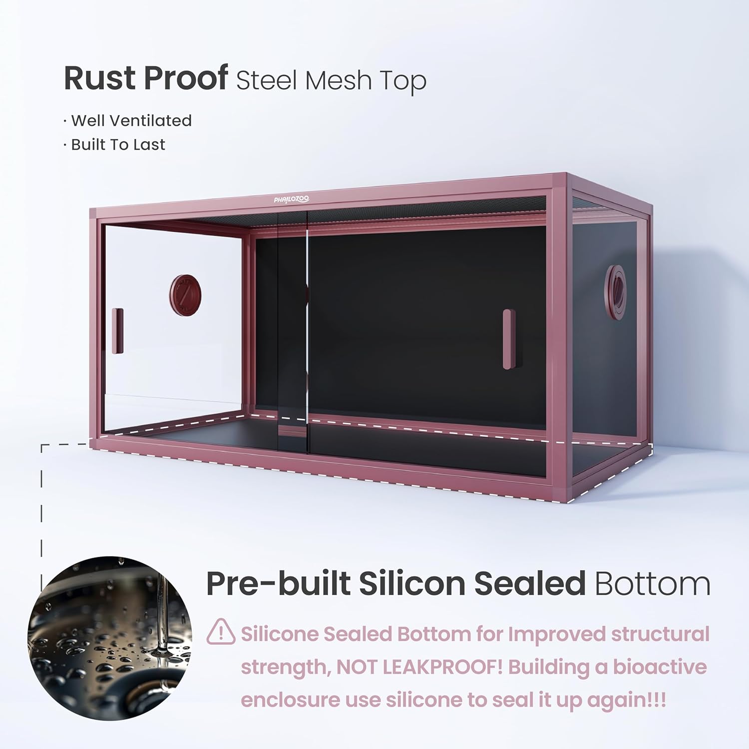 - ăCautionăSilicone sealed bottom for improved structural strength, NOT LEAKPROOF! Building a bioactive enclosure use silicone to seal it up again!
