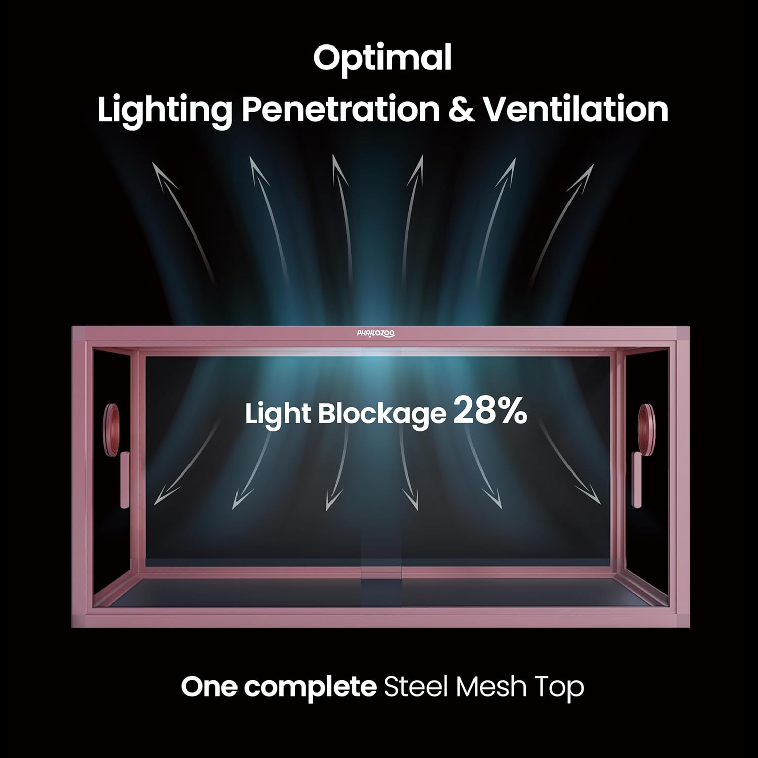 - ăWorry LessăNO GAPS FOR ESCAPING with fully closed structure. Rigid tempered glass doors with tiny door gaps. Rust proof top screen ventilation allows better air circulation, and optimal lighting penetration.