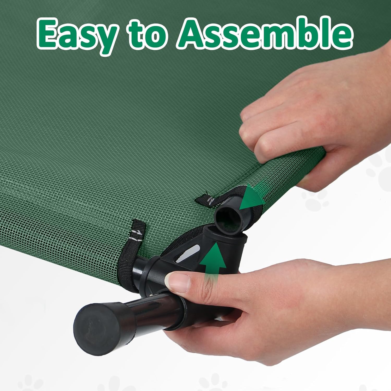 35 Inch Cooling Medium Elevated Outdoor Dog Bed, Raised Dog Cot Beds with Breathable & Washable Mesh, Lifted Pet Hammock Bed with Anti-Slip Feet (M, Green)