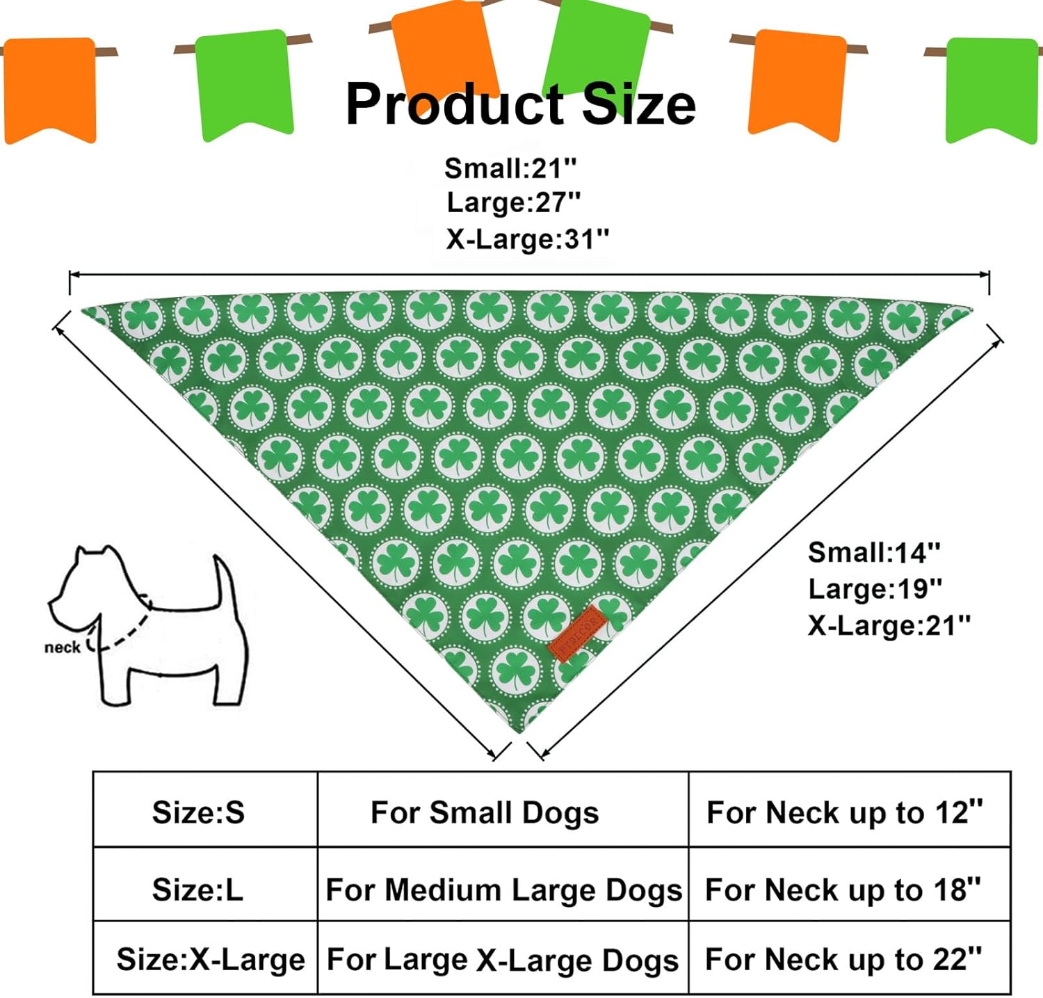 - 2 Pack Dog Bandanas: One package has two different style dog lrish bandanas. Both bandanas were full of festival atmosphere, super cute and loved both by your boy and girl! Whether the character of your dog is lively or quiet, these bandanas will fit them all!