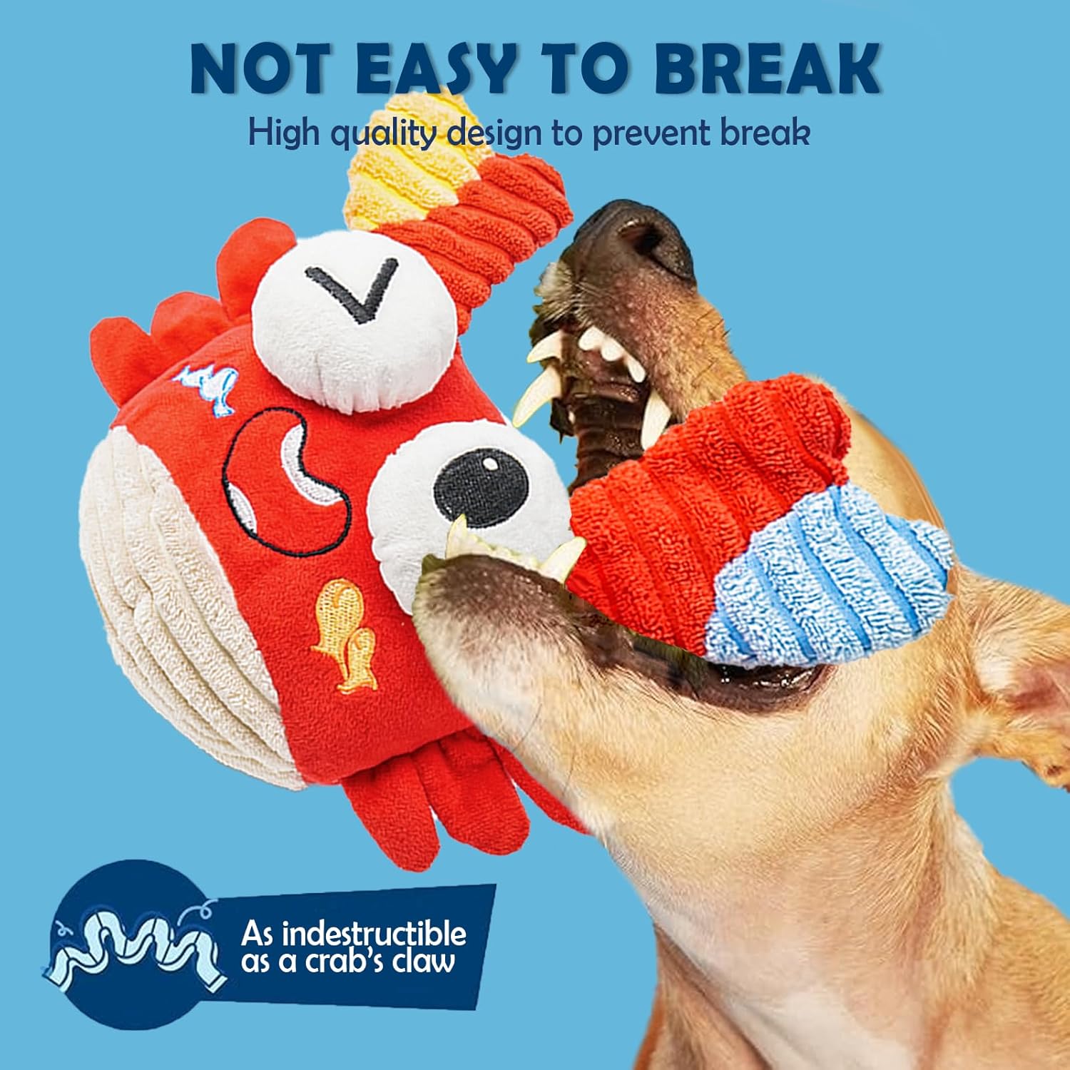 - Unique Smiling Crab Design: The interactive crab dog toy is made of high-quality, ultra-soft plush and thick cotton material, ensuring safety, durability, and gentleness on your pet's teeth and gums. Each plush crab features an upgraded, sturdy Velcro strap on its back, which is safe for dogs and ensures the ball stays securely in place without falling or breaking during play.