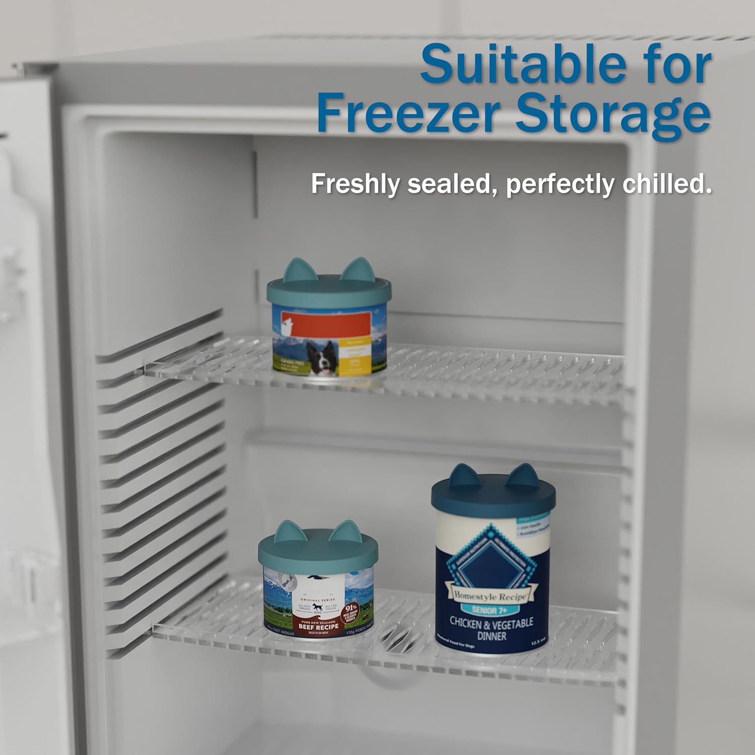 OHMO 2 Pack Pet Food Can Lids, (12.5-14oz) BPA Free Silicone Covers for Cat and Dog Food Cans, Dark&Light Blue
