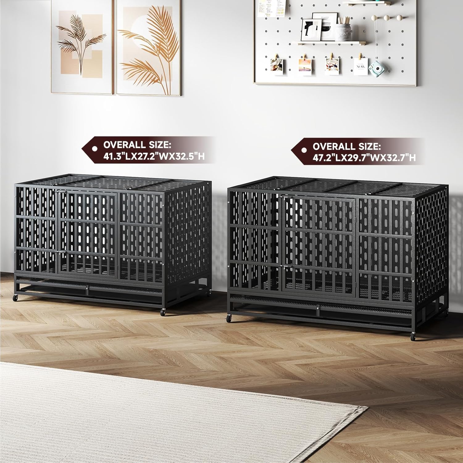 - 🐾【Removable fo Easy Cleaning】:Extra large dog crate comes with a plastic tray and a floor grate. The durable slide-out tray that comes with the kennel can catch fallen any soiling, helping you clean out the kennel quickly and easily