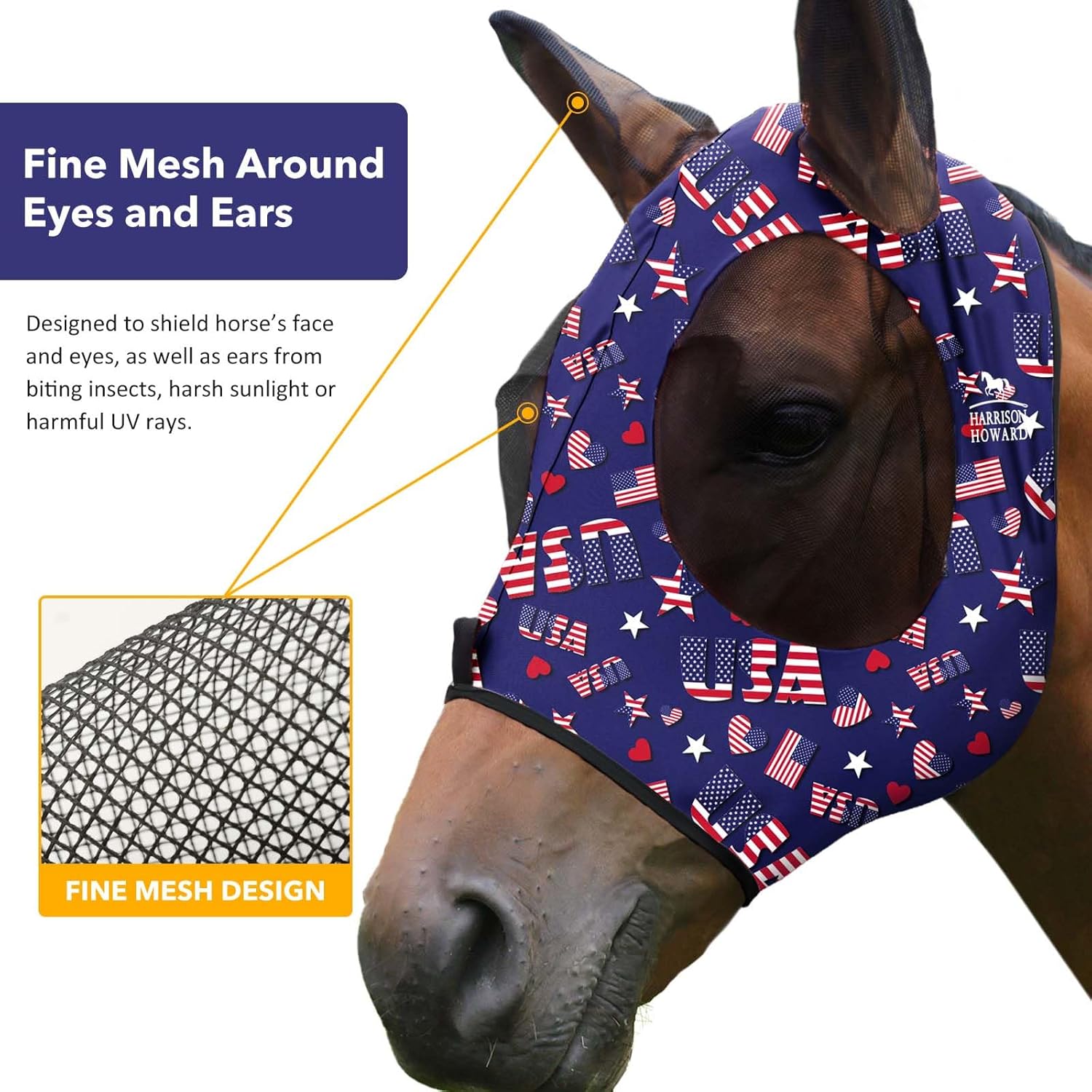 Harrison Howard Super Comfort Stretchy Fly Mask Large Eye Space with UV Protection Soft on Skin with Breathability Classic Letters S