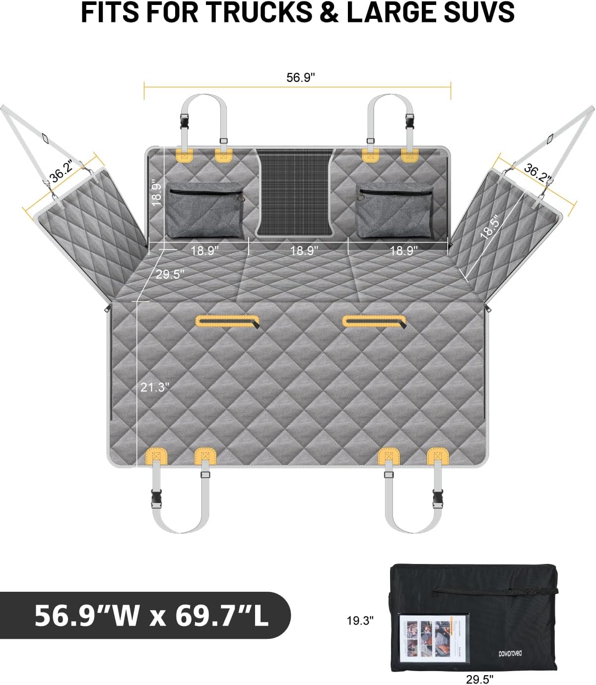 - Extended Activity Space: Our car hammock (56.9”W x 29.5”D) prevents footwell sliding, expands space by 40%, and ensures safety for movement and stretching to ease travel anxiety. Offers full rear-seat coverage, ideal for large breeds, older dogs, or multi-dog households.