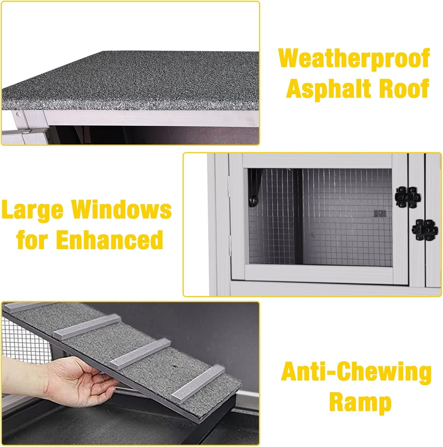 - All-Weather Protection: Weather-resistant asphalt roof and a cozy nesting box shield your pet from harsh conditions, ensuring year-round comfort and safety
