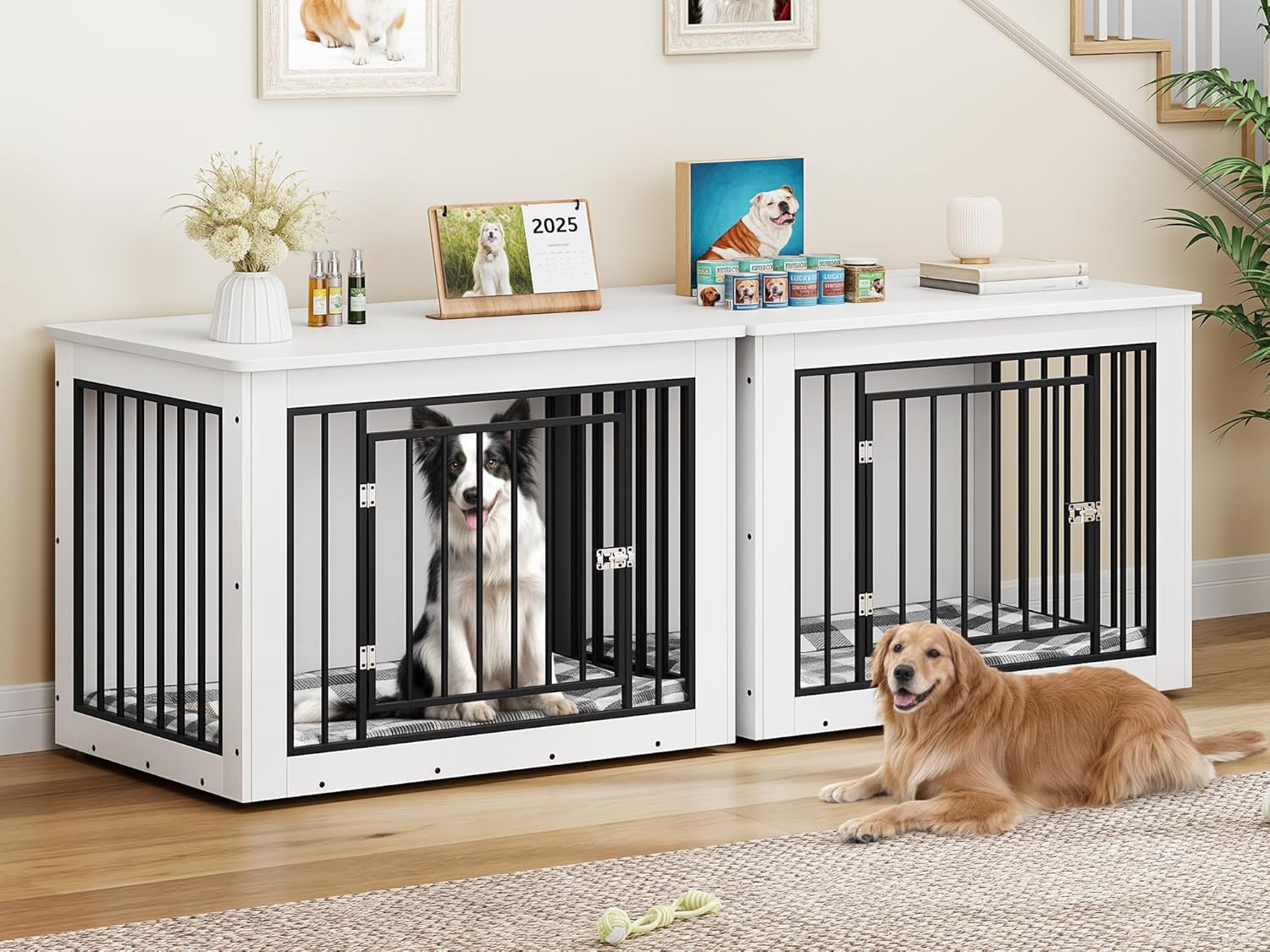 - 2-in-1 Design: The large dog kennel serves as a functional side table that also doubles as a cozy resting space for your pet and stylish furniture piece; Its innovative design saves space and adds a unique element to your home decor, blending utility and style