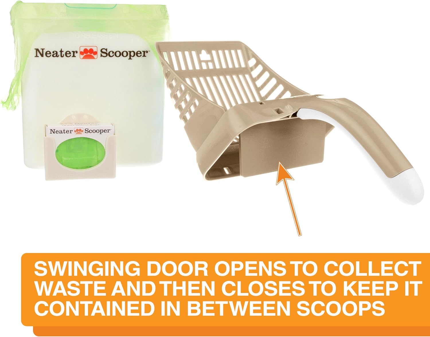 • REFILL BAGS & DISPENSER INCLUDED: Includes 15 tie-handle refill bags and a dispenser that attaches to your litter box. The bags are custom-fit for the standard Neater Scooper. For refills, choose green Neater Scooper refill bags for a perfect fit.