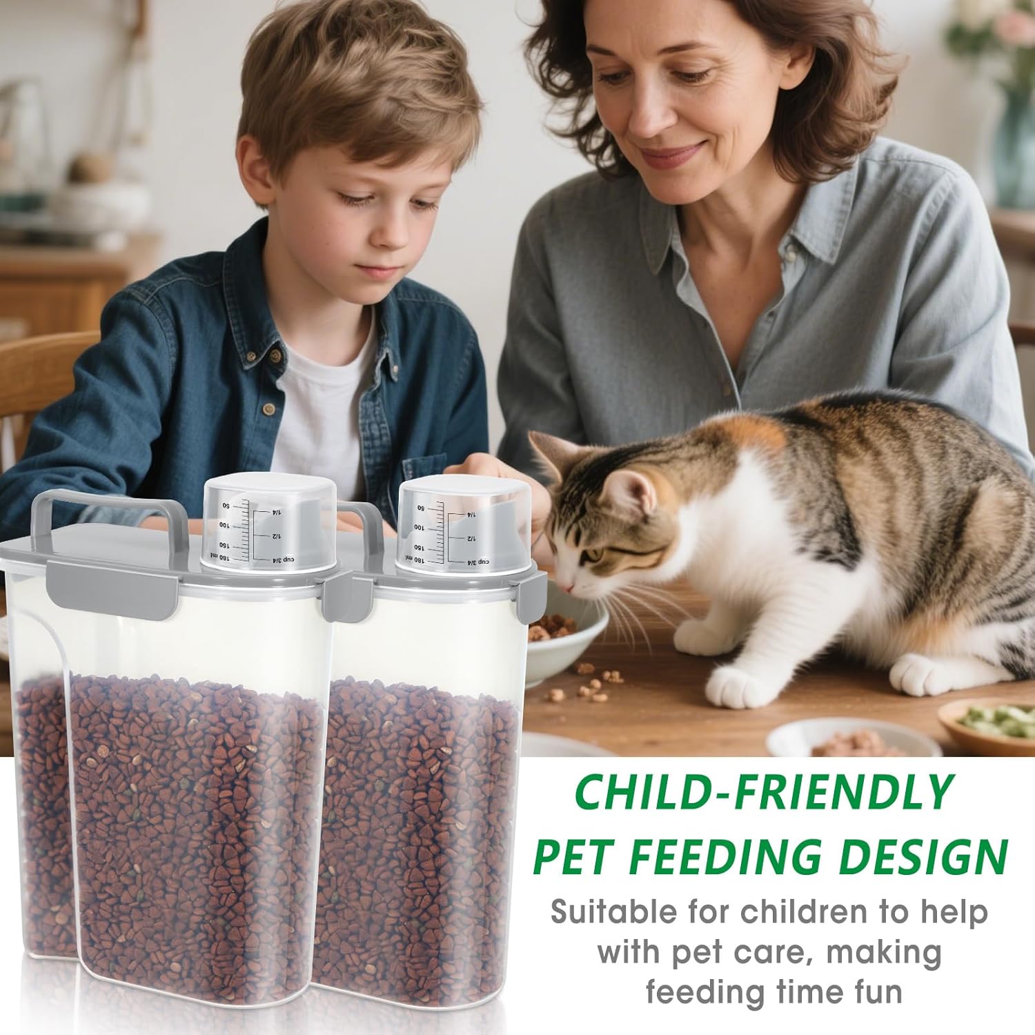 - Reliable Cat Food Container: The cat food storage container is made of BPA-Free material and durable construction, providing a healthy and convenient storage solution for your pet food