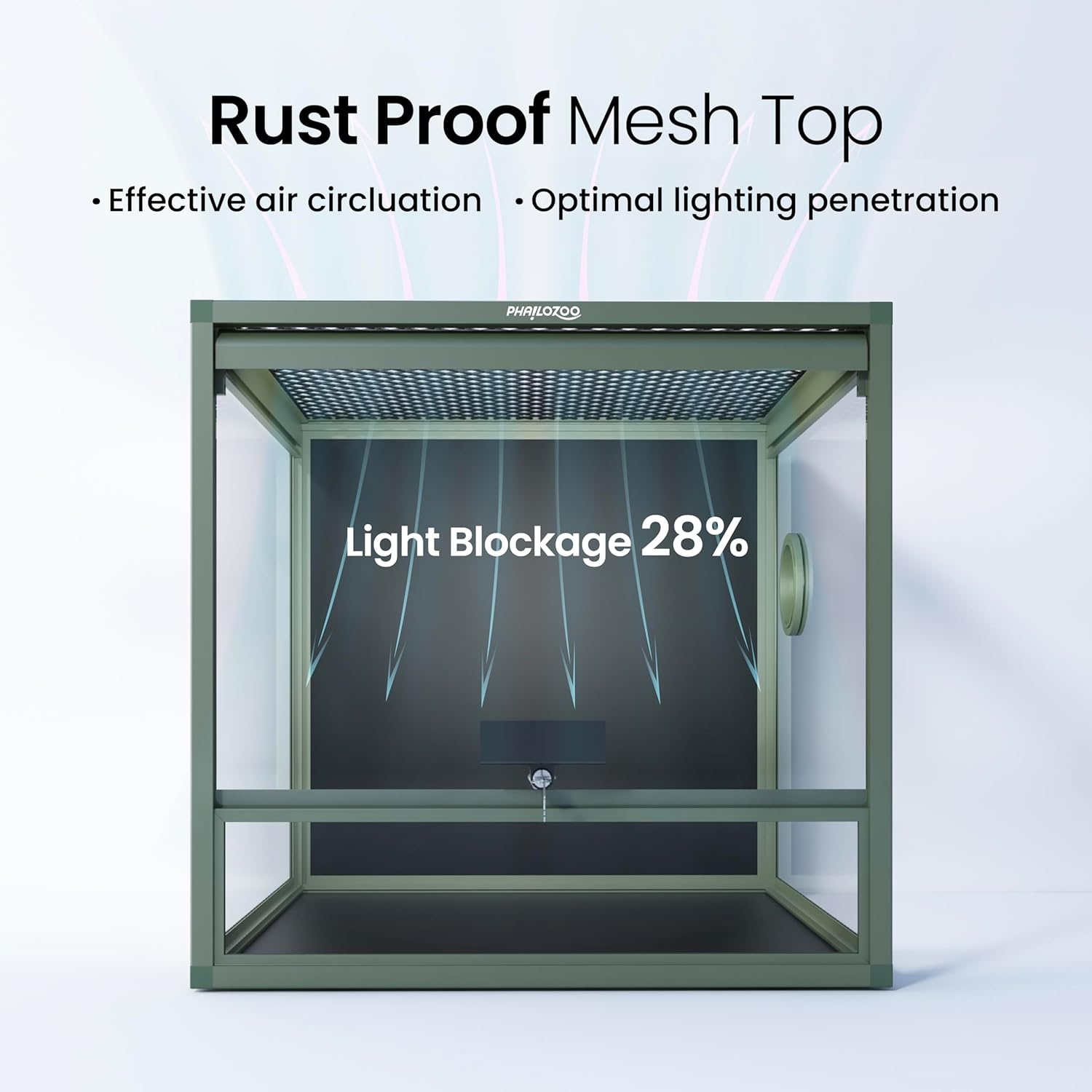 - ăPerfect for BeginnersăPhailozoo 24-gallon reptile tank with single grommet measures 18'Lx18''Wx18''H. It only weighs 16.5 pounds. Easily assembled in six steps, perfect for first time reptile keepers.
