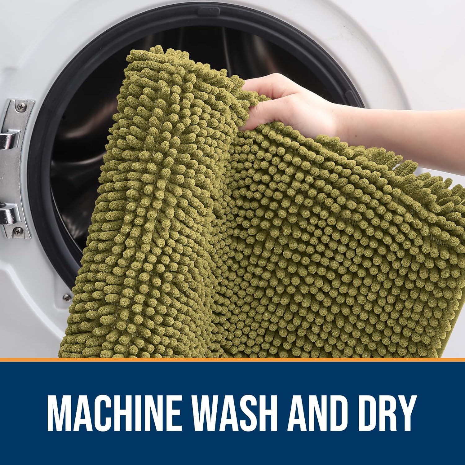 OLANLY Dog Door Mat for Muddy Paws 36x24, Absorbs Moisture and Dirt, Absorbent Non-Slip Washable Doormat, Quick Dry Chenille Mud Mat, Entry Indoor Entryway Carpet for Inside Floor, Willow Green