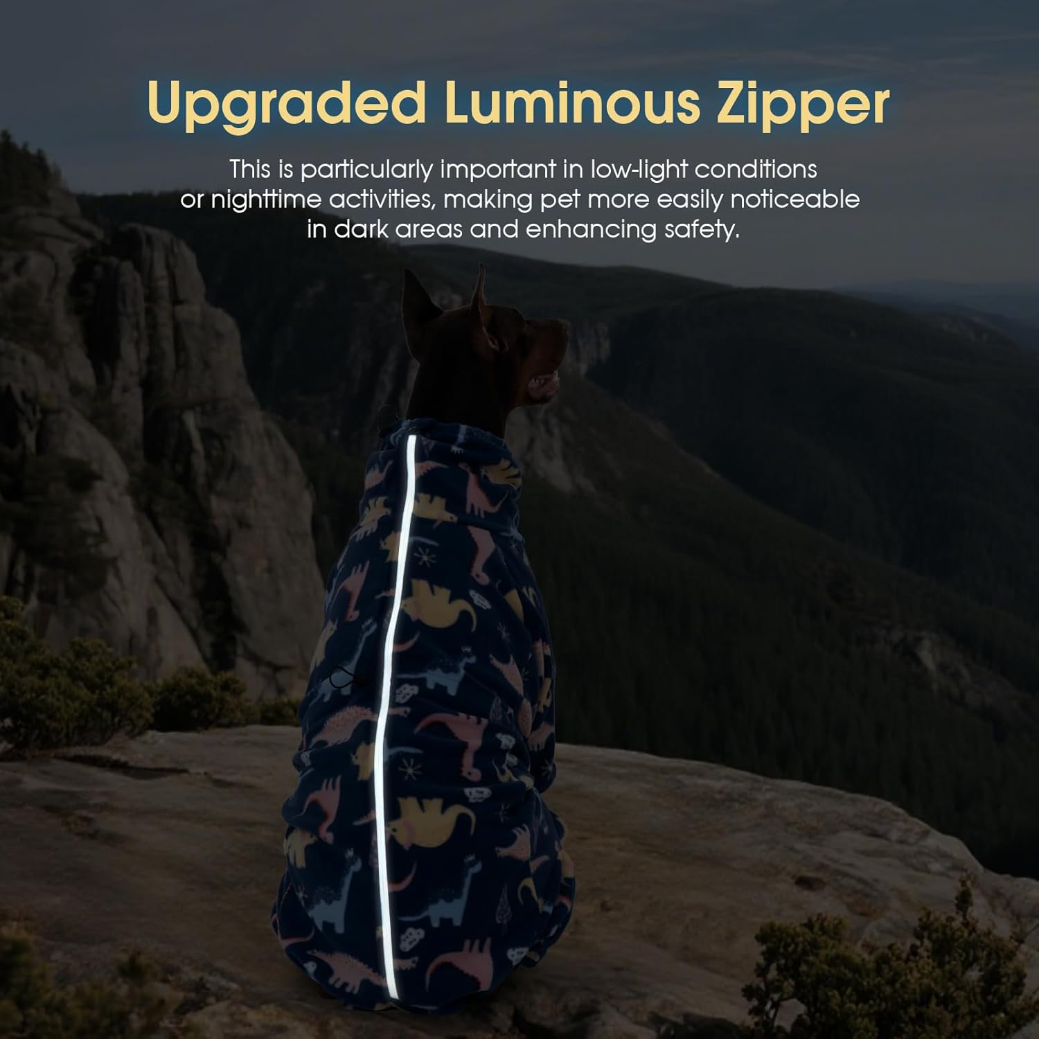 ROZKITCH Dog Winter Coat Soft Fleece Dog Pajamas, Pet Windproof Warm Cold Weather Jacket Vest with Reflective Zipper, Jumpsuit Apparel Outfit Clothes for Medium Dog Dinosaur S
