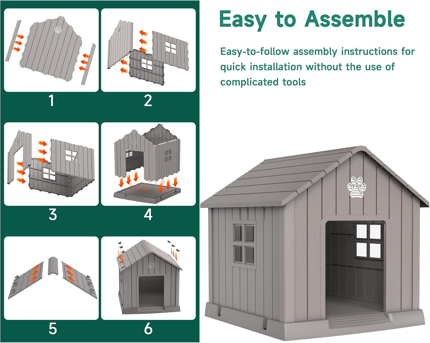 - EASY TO INSTALL AND CLEAN: Comes with all the accessories, follow the step-by-step instructions and an adult can assemble the dog house in less than 20 minutes. Simple to clean, just remove the roof for easy access to the inside of the dog house.