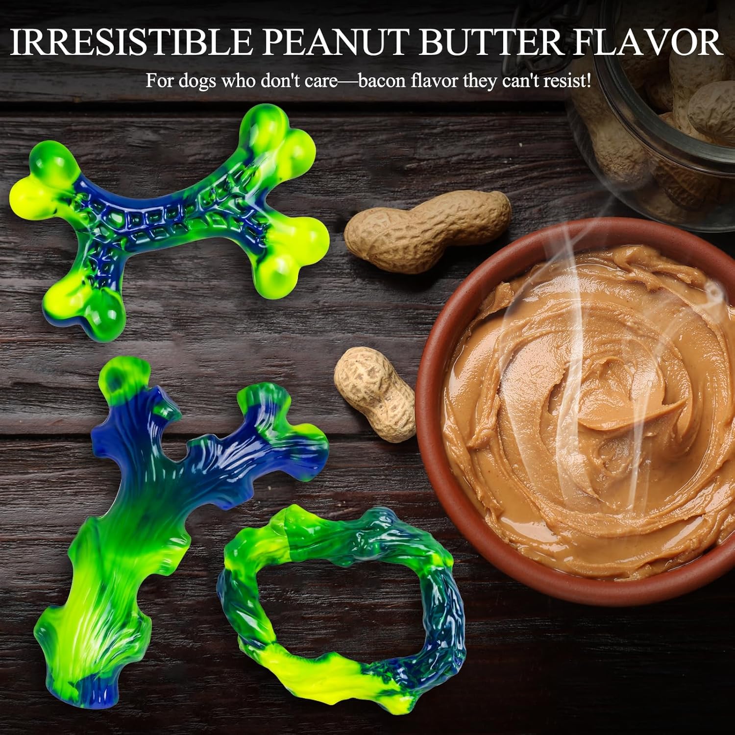 - FLAVOR ATTRACTION: Peanut Butter-Infused Enjoyment. Infused with authentic peanut butter flavoring, this chew toy becomes an instant favorite. Your dog will eagerly return to it whether for extended chewing sessions or quick bursts of playful gnawing.