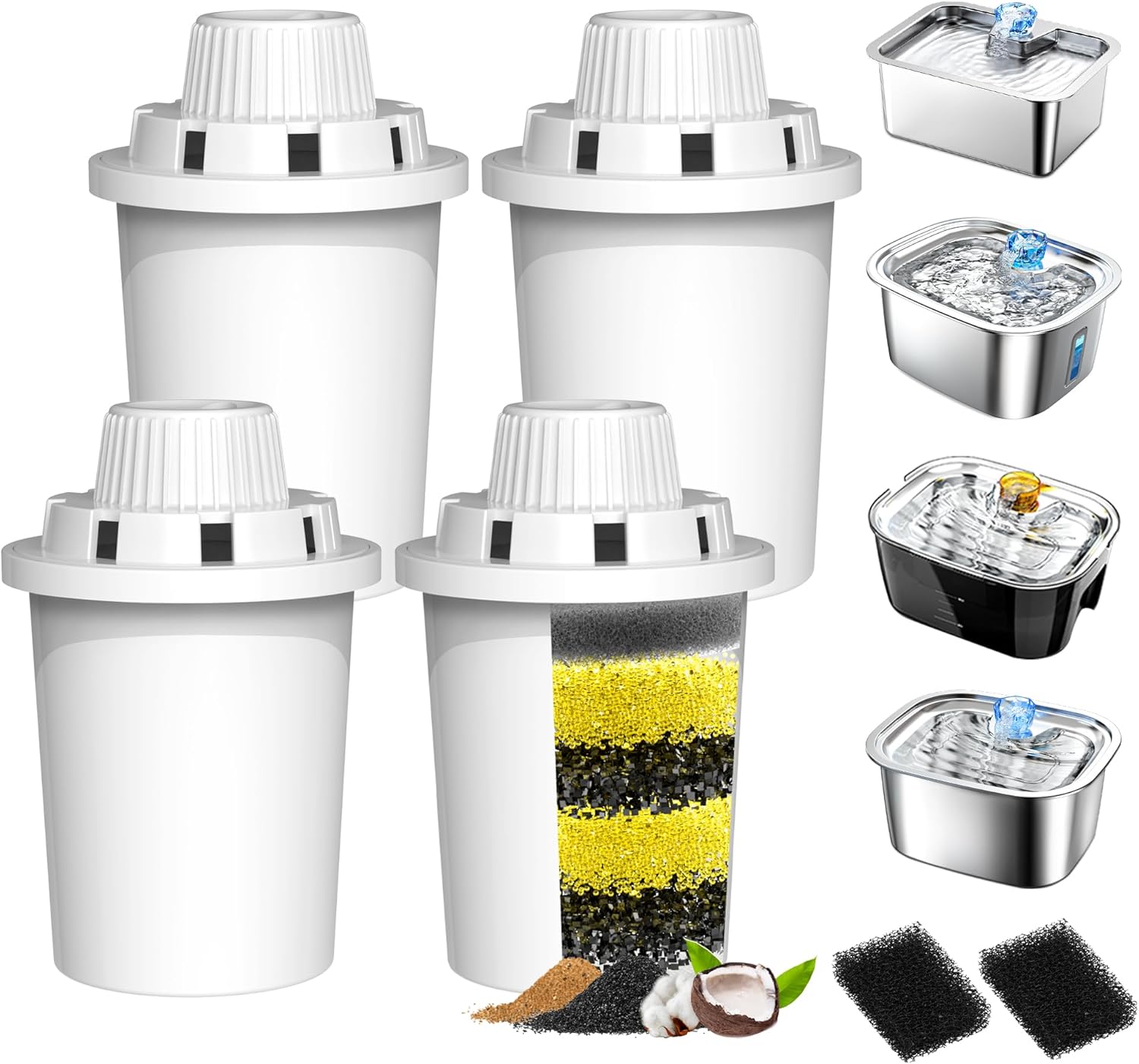 - Dog Water Filter Replacement: This set includes 4 packs of dog water bowl filter replacement that are compatible with the PETNF stainless steel large dog water fountain. They also fit models D2341, D2322, D2419, D2223, and D2340. Please note that this package contains only 4 filters; the pet water fountain is sold separately
