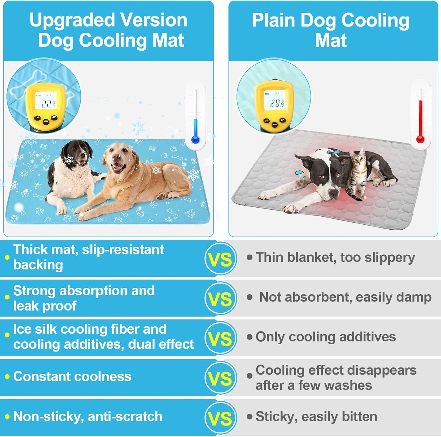 BEAUTYZOO Upgraded Dog Self Cooling Mat Ice Silk Chill Pads for Small Medium Large Dogs Q-MAX>0.43- Summer Reusable Pet Training Pad - Absorbent Non-Slip Cool Mat for Kennels, Crates, Beds, 18" x 24"