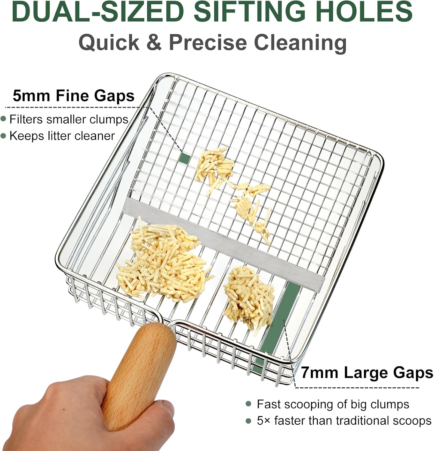 - Litter Scoop with Wooden Handle: The handle, made from natural beech wood, is ergonomically designed for comfort, enhancing the overall scooping experience