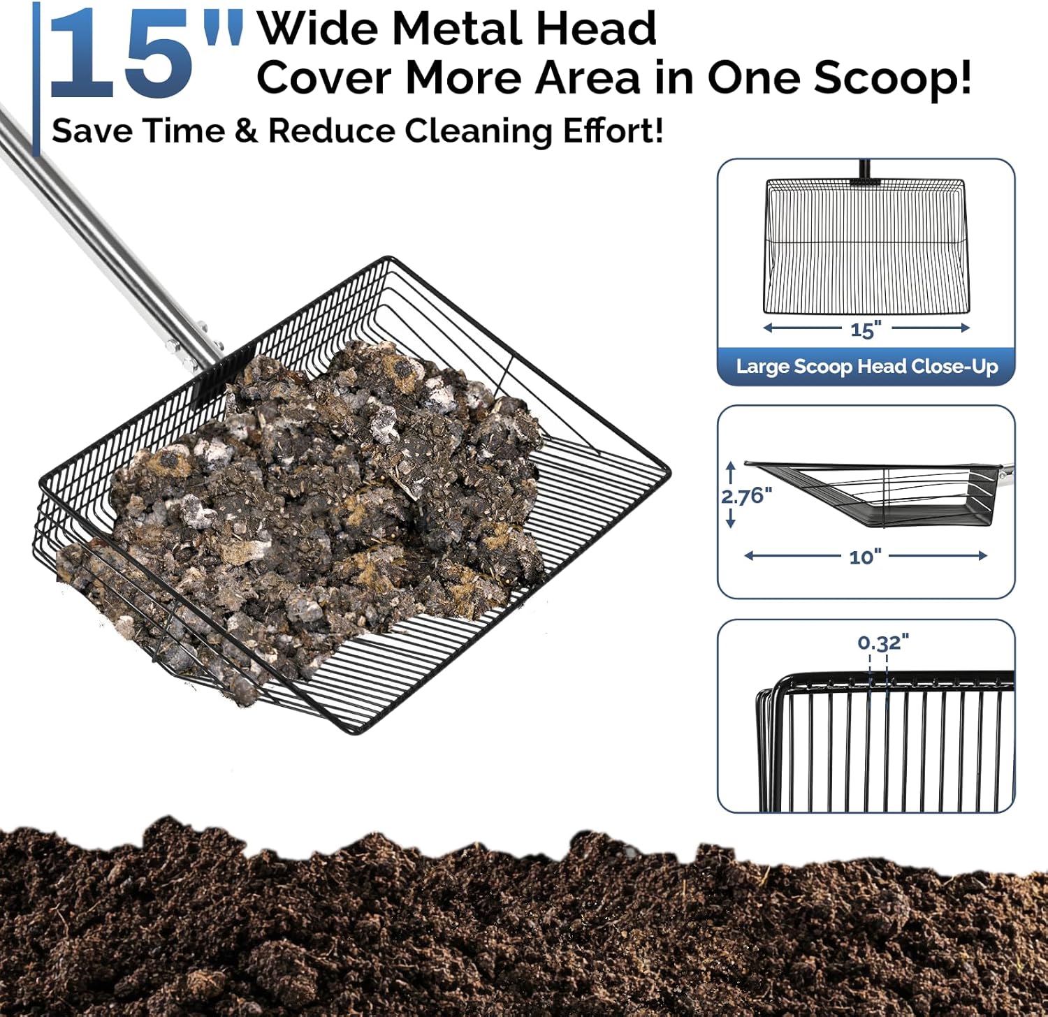 - ๐๐% ๐๐ข๐๐๐ซ ๐๐ก๐๐ง ๐๐ญ๐๐ง๐๐๐ซ๐ - ๐๐ฅ๐๐๐ง ๐๐% ๐ ๐๐ฌ๐ญ๐๐ซ ๐ข๐ง ๐๐๐ซ๐ ๐ ๐๐จ๐จ๐ฉ๐ฌ: Dominate big cleanups with our 15-inch chicken coop scooper โ 50% wider than standard 10-inch models! Sift 2x faster in deep litter, sand, or hemp bedding. Clean a 200 sq.ft coop in 15 minutes (vs. 25+ mins with smaller scoops). Farmersโ #1 time-saver!